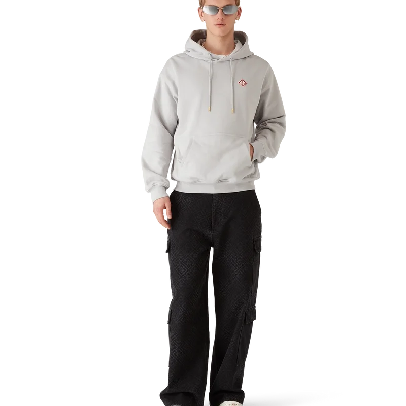 De Casa Logo Patch Hoodie is een verfijnd apras-sport silhouet met het kenmerkende diamantlogo van het huis. Afgewerkt met een kangoeroezak, geribde manchetten en zoom, en een trekkoord met gouden uiteinden.