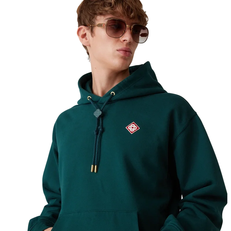 Het sweatshirt met capuchon en diamantlogo is een klassiek ontwerp in de kenmerkende, tijdloze kleurstelling van het huis. Afgewerkt met het diamantlogo, een kangoeroezak, een capuchon met oogjes met gouden uiteinden en trekkoord, een merkknopje voor stevige sluiting, geribde manchetten, zijpanelen en zoom.