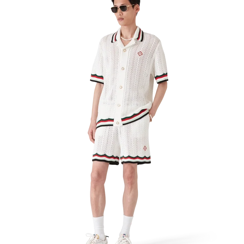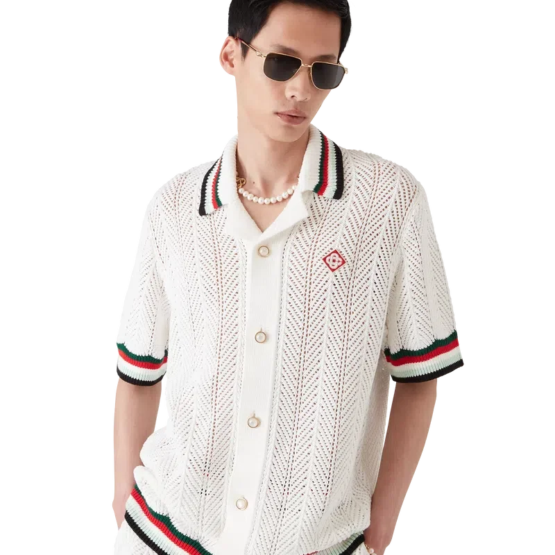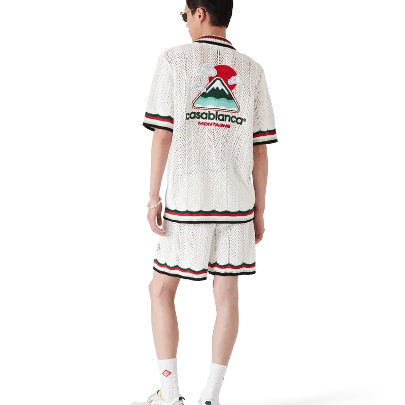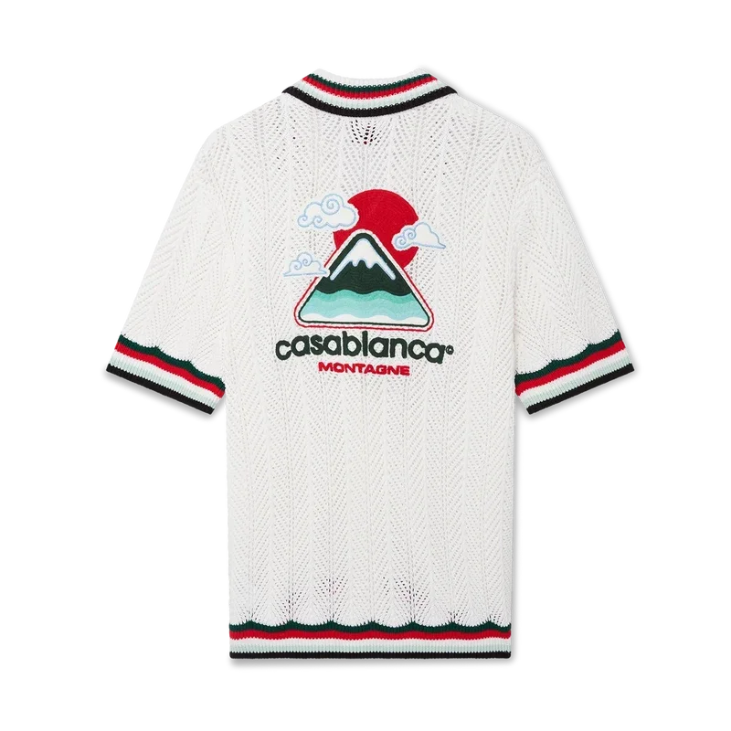 Het Montagne Ondulee gehaakte overhemd is een gebreid ontwerp met korte mouwen, vervaardigd van gehaakte katoenen stof en voorzien van het kenmerkende diamantlogo van het huis en seizoensgebonden kunstwerken. Deze collectie is geïnspireerd op de rijke iconografie van Japan en heeft een eenvoudige lay-out en kunstwerken die met slechts enkele lijnen en kleuren een sterke visuele boodschap overbrengen, waardoor het een van de emblemen van de collectie is.