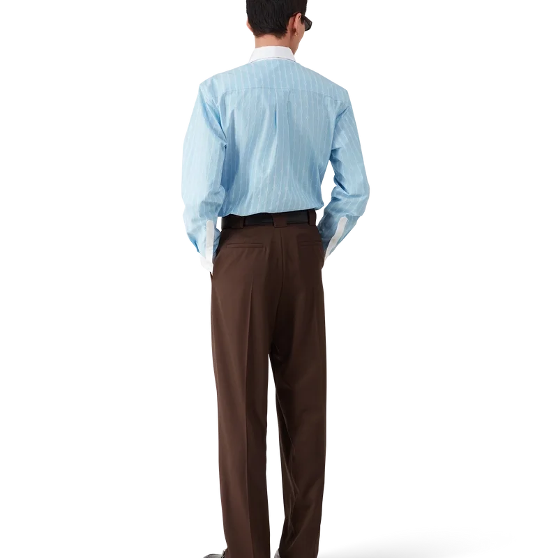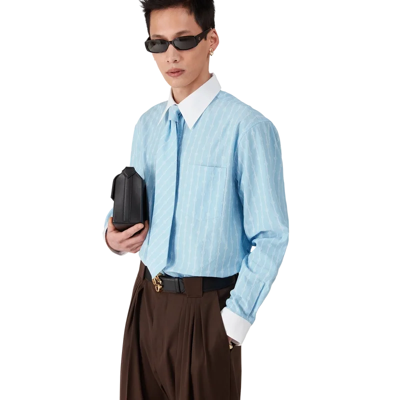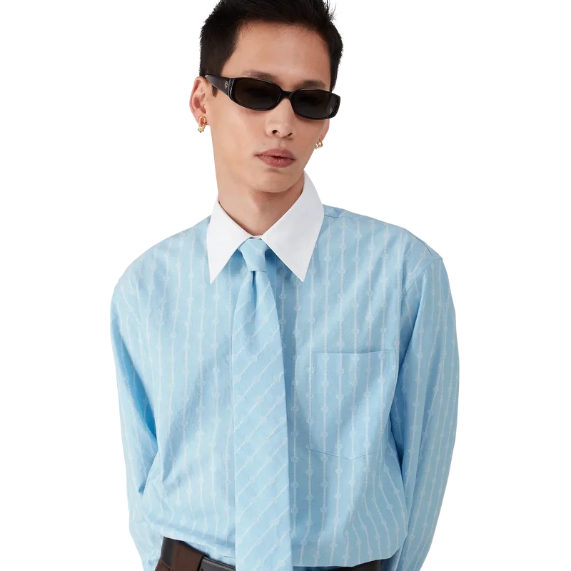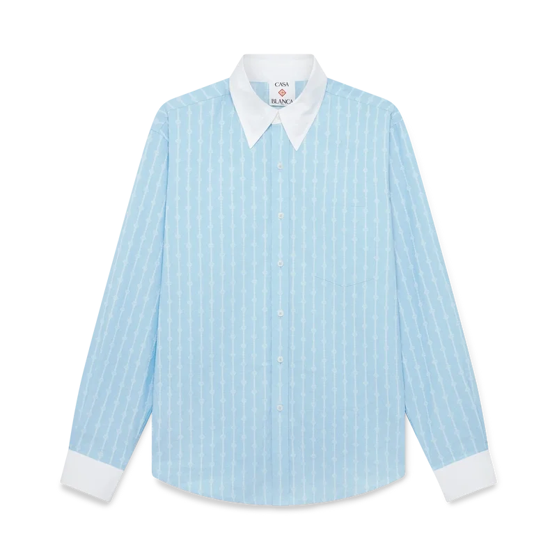 Het Laurel Stripe Jacquard-overhemd is een getailleerd model met lange mouwen, vervaardigd van katoenen jacquardstof. Afgewerkt met contrasterende witte manchetten en een puntkraag, knoopsluiting met in elkaar grijpende Cc-logo Corozo-knopen en een borstzakje.