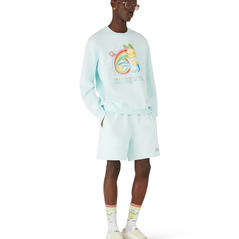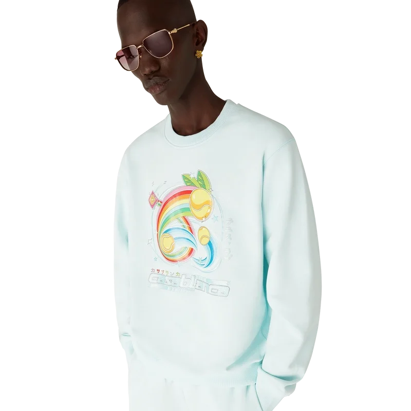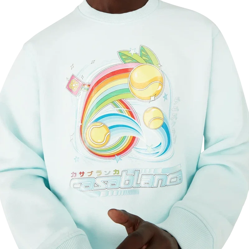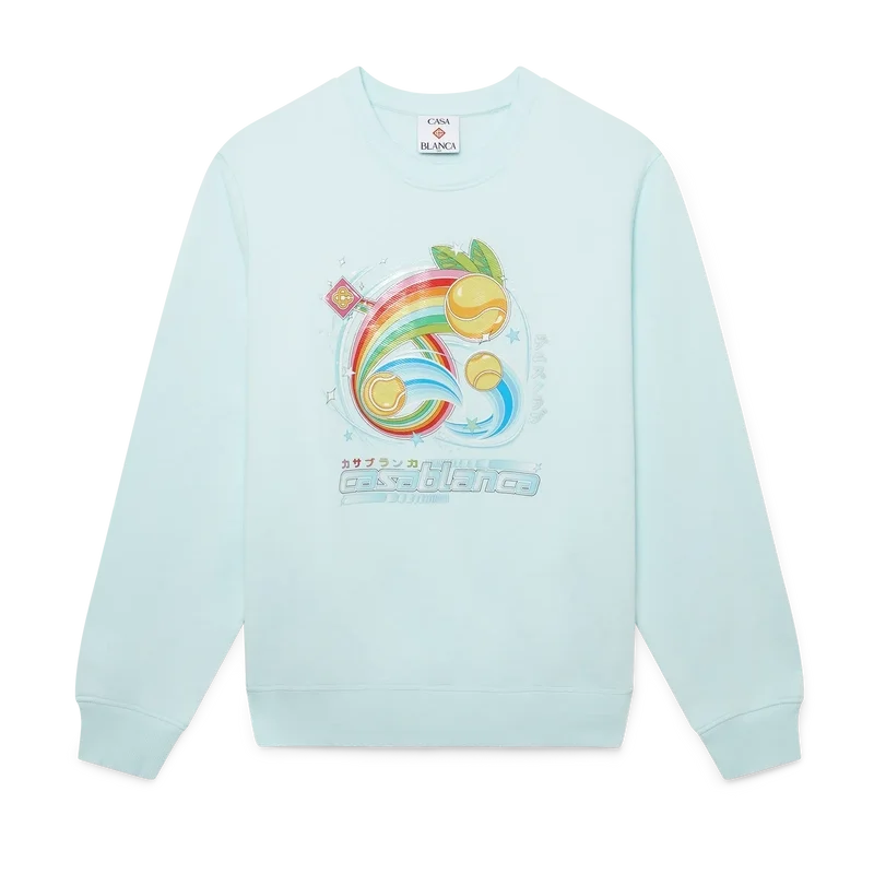 Het Manga Tennis Ball Sweatshirt is een ontwerp met lange mouwen, gemaakt van biologisch katoen, met seizoensgebonden kunstwerken die de wereld van Kawaii en Manga verkennen, spelend met de iconografie van Casablanca, waarbij tennisballen als sinaasappels worden gebruikt voor een leuke twist. Afgewerkt met een klassieke ronde hals.