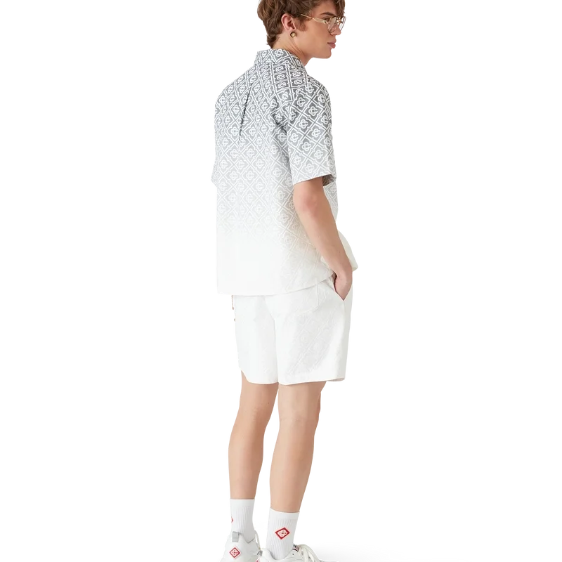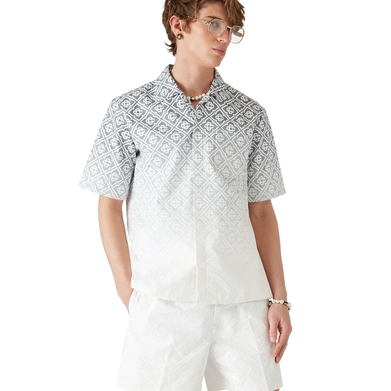 Het Monogram Gradient Shirt is een bedrukt overhemd met korte mouwen en een klassiek silhouet, vervaardigd uit een katoenmix met Monogram-kleurverloop en voorzien van het kenmerkende Diamond Monogram van het huis. Afgewerkt met een knoopsluiting, een borstzakje en een Cubaanse kraag.