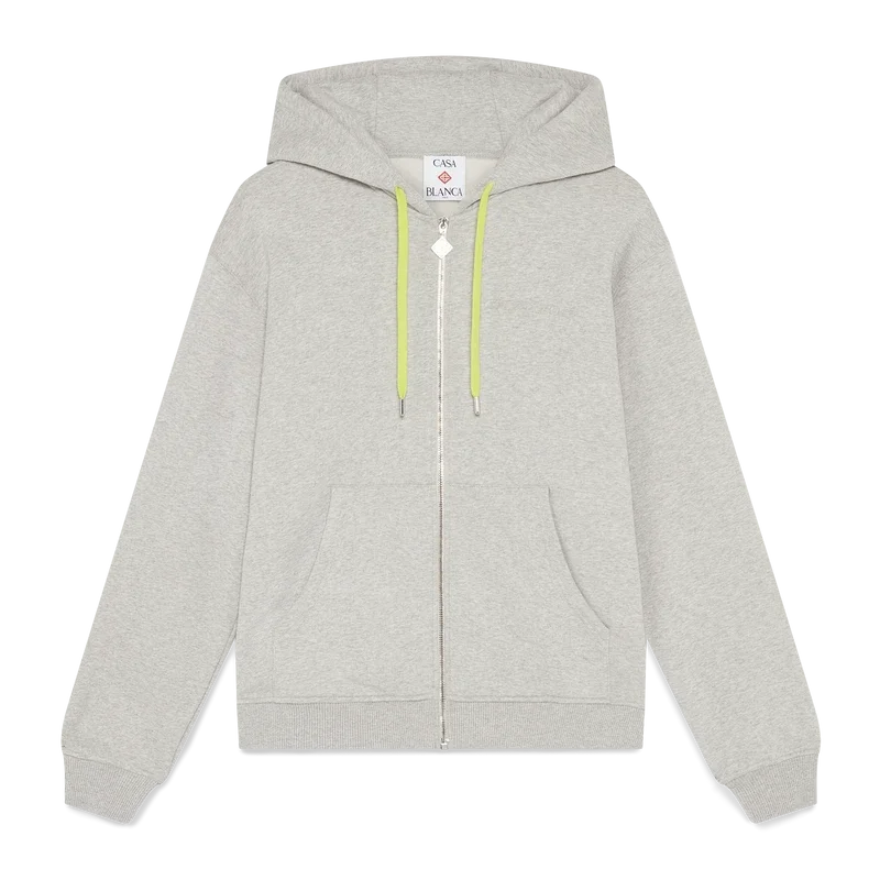 Het sweatshirt met capuchon en ritssluiting van kasjmiermix is een klassiek sportkledingontwerp met lange mouwen. Afgewerkt met een capuchon, trekkoordsluiting, een ritssluiting met het diamantlogo van het huis op het ritslipje, opgestikte zakken en geribde manchetten en zoom.