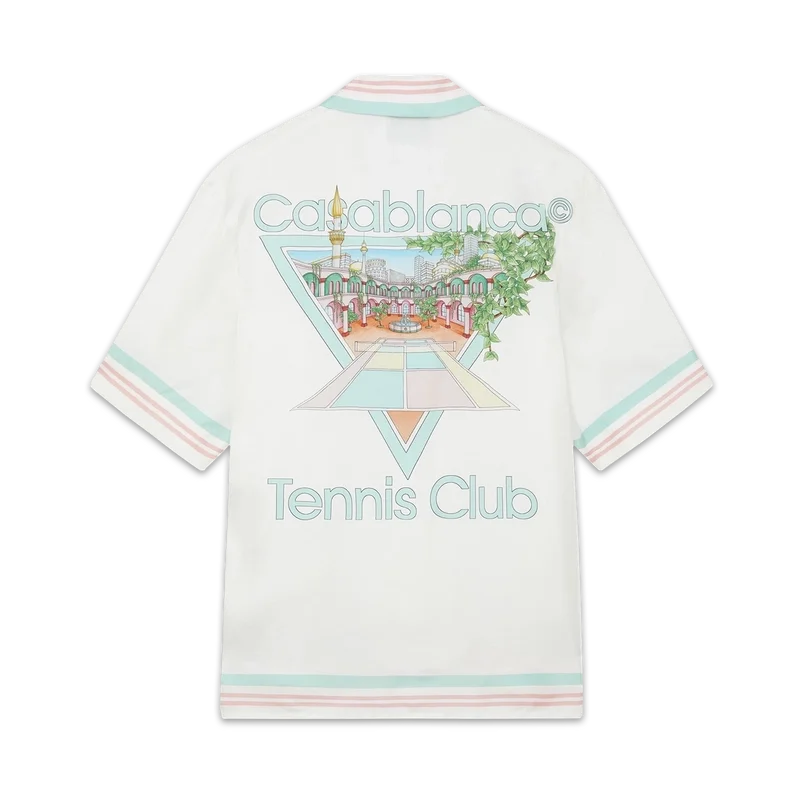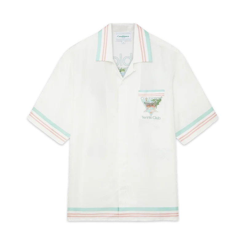 Het Tennis Club Icon Pastelle zijden overhemd is voorzien van het kenmerkende kunstwerk van het huis, opnieuw geïnterpreteerd voor dit seizoen. Afgewerkt met een Cubaanse kraag die bedoeld is om open gedragen te worden, met knoopsluiting aan de voorkant en ontworpen voor een relaxte pasvorm.