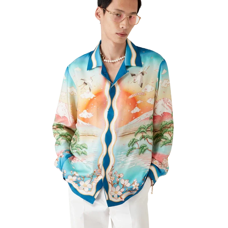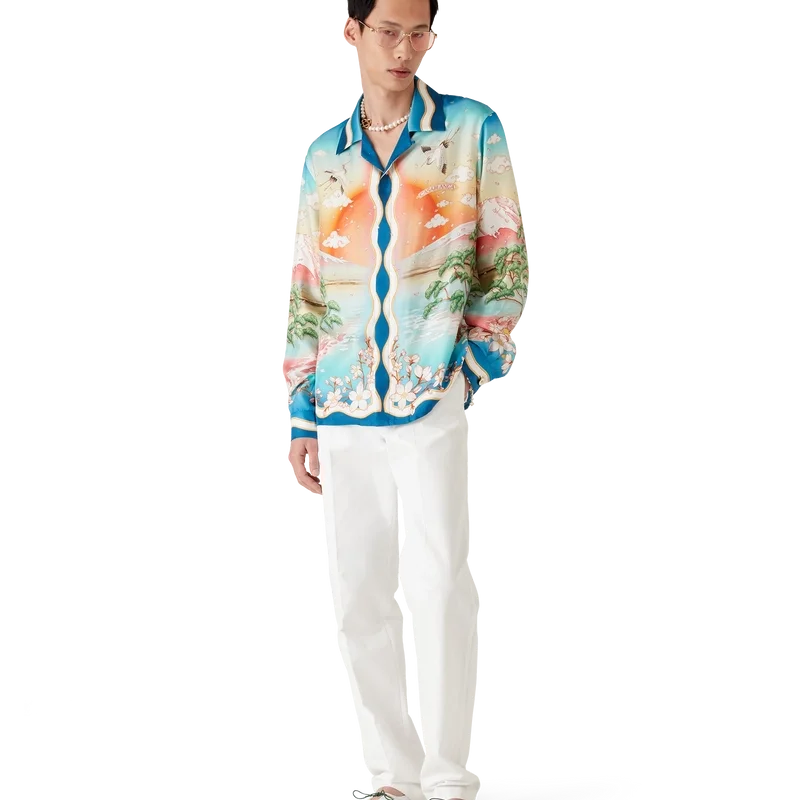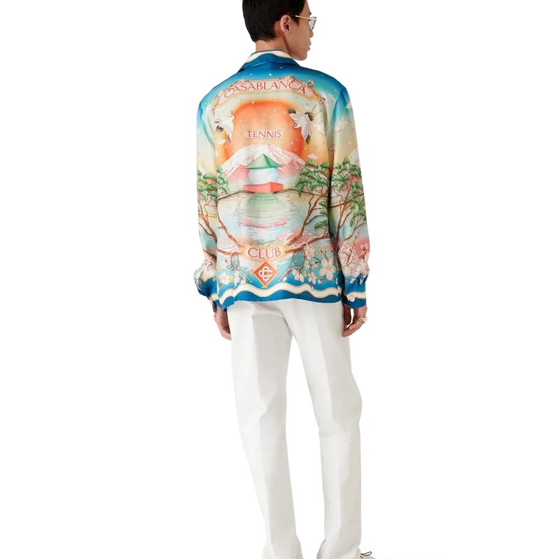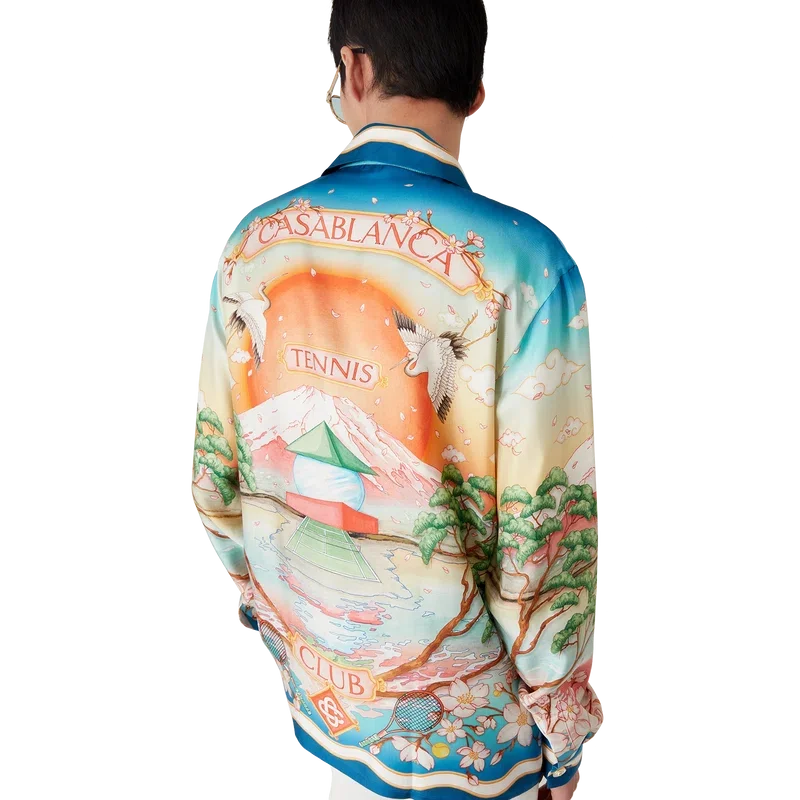 Het Tennis Club zijden overhemd is een model met lange mouwen en een all-over print met de Tennis Club-versie van dit seizoen, waarbij onze klassieke lay-out wordt gecombineerd met traditionele Japanse kunst. Dit maakt het een kledingstuk met een sterk verhaal en een prachtige manier om artistieke stijlen te combineren. Het is vervaardigd van zijden twill. Afgewerkt met knoopsluiting, in elkaar grijpende Cc-logo Corozo-knopen, kenmerkende parelknopen met gouden rand bij de kraag en manchetten, en op de Memphis Wave geïnspireerde streepdetails op de zoom, manchetten, knoopsluiting en kraag.