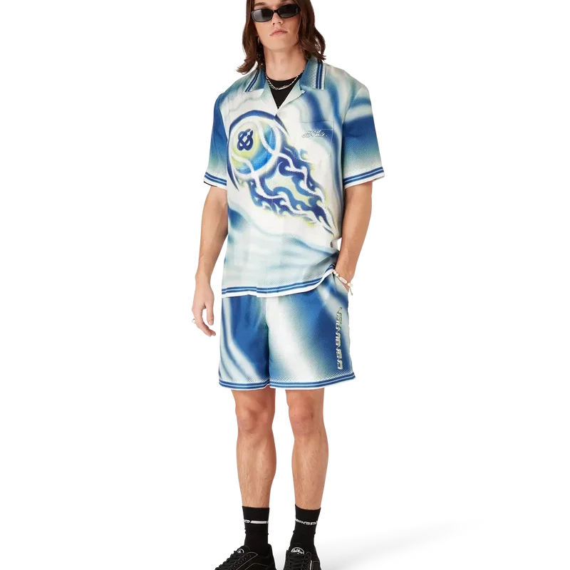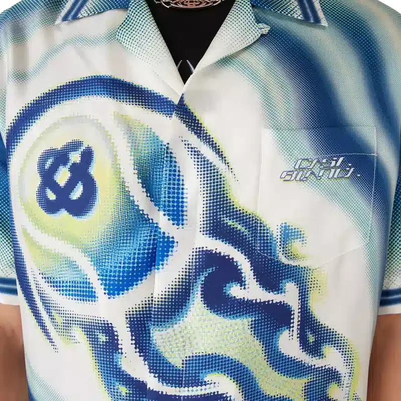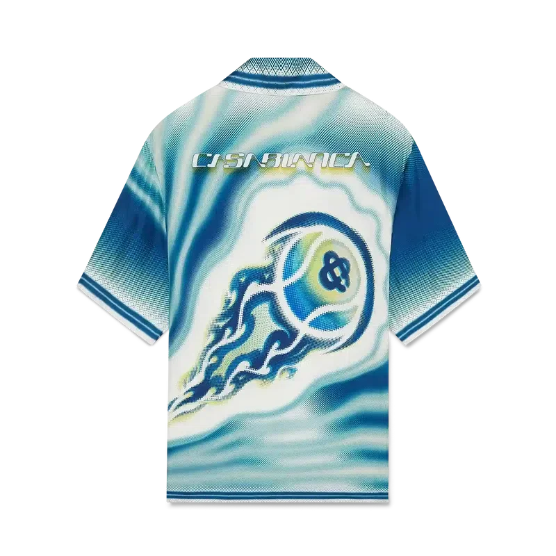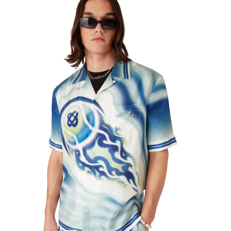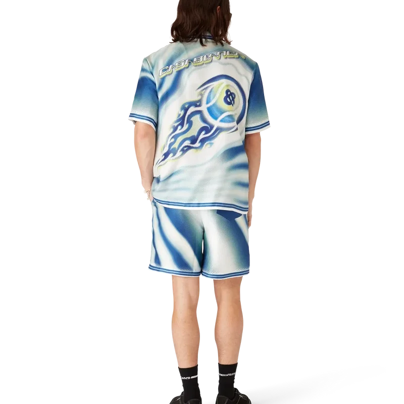 Het Art of the Serve zijden overhemd met korte mouwen heeft een all-over print met het kenmerkende tennisbalmotief van het huis in vlucht, dat de fundamentele balans tussen kracht, snelheid en controle weerspiegelt. Afgewerkt met een Cubaanse kraag, Casablanca-logo, knoopsluiting, Corozo-knopen met het Cc-logo, een borstzakje en gestreepte randen op de kraag, manchetten en zoom.<!–