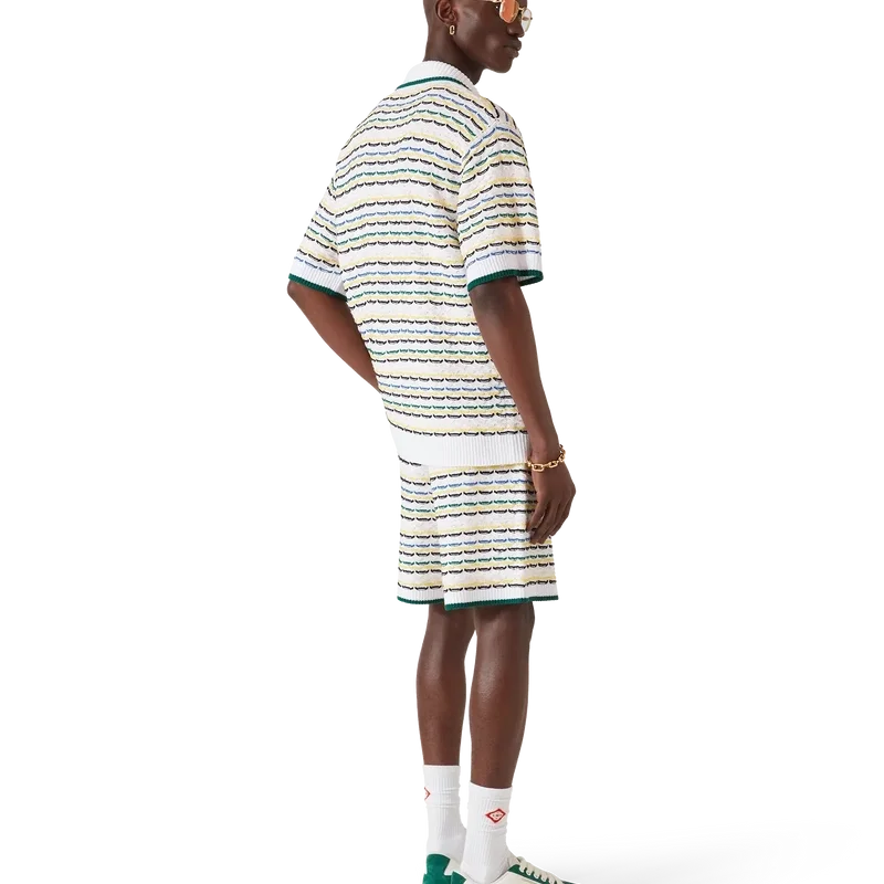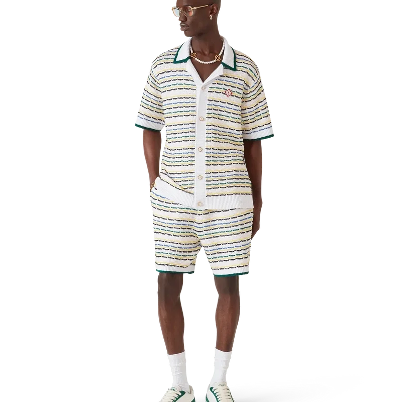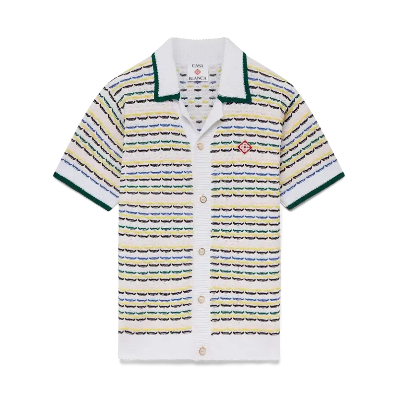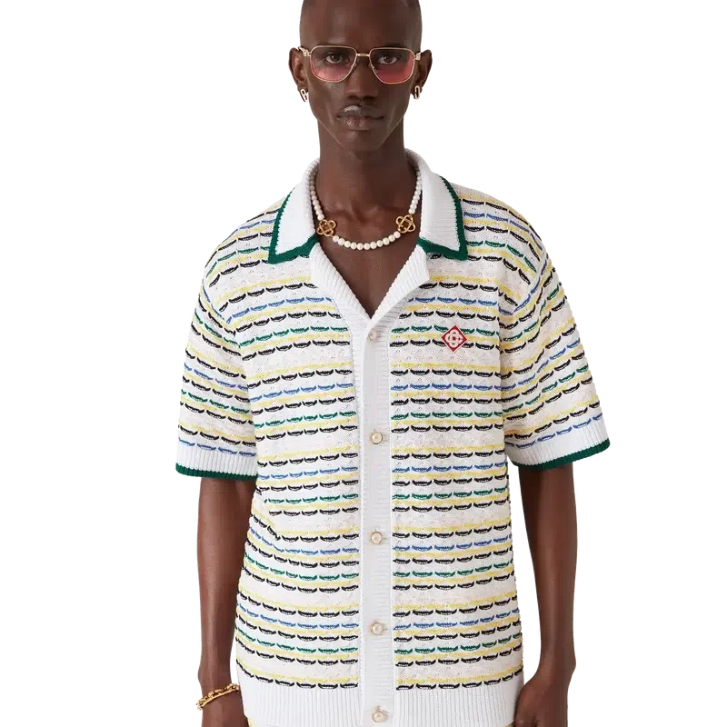 Het Tuck Stitch-overhemd is een gebreid ontwerp met korte mouwen en het kenmerkende diamantlogo van het huis. Afgewerkt met een Cubaanse kraag, knoopsluiting, kenmerkende parelknopen met gouden rand en geribde details bij de kraag, manchetten, zoom en knoopsluiting. Ontworpen om te dragen met de bijpassende Tuck Stitch-Shorts.