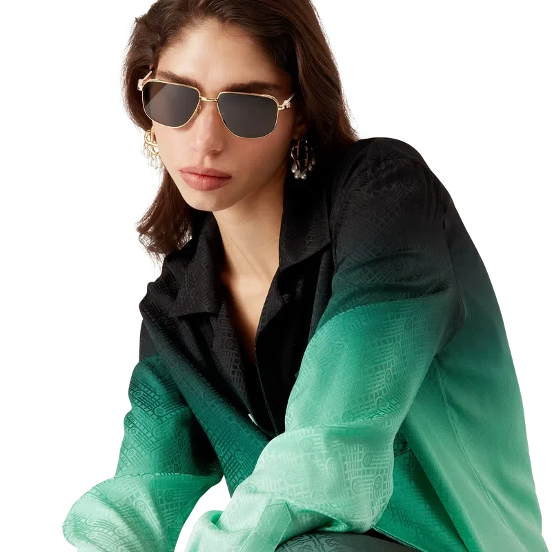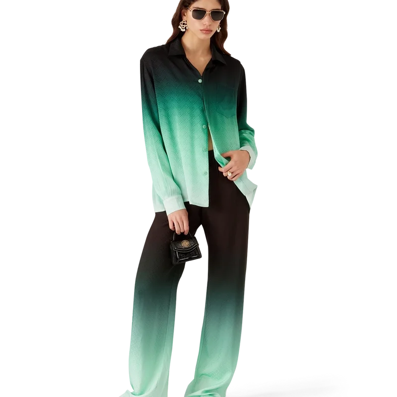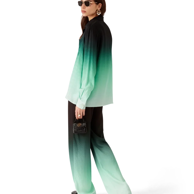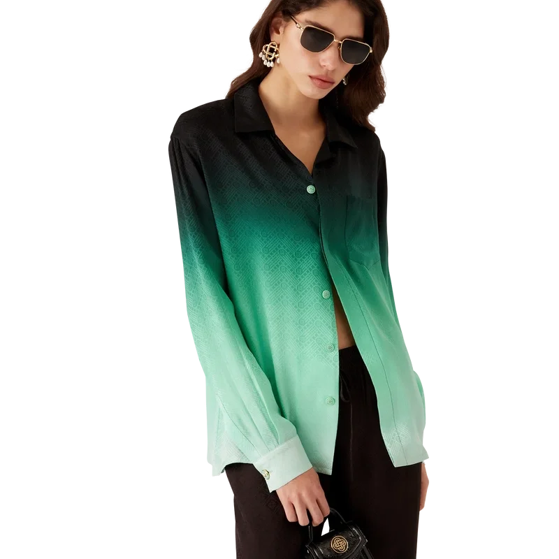 Het Gradient Ping Pong Jacquard zijden overhemd is een ontwerp met lange mouwen en een all-over print – met een klassiek monogram dat is ontwikkeld voor onze eerste Japanse collectie, met pingpongballen in beweging die een diagonale beweging maken, als herhalend patroon – vervaardigd van een monogram zijden twill-stof. Afgewerkt met een Cubaanse kraag, knoopsluiting, Corozo-knopen met het in elkaar grijpende CC-logo en kenmerkende geëmailleerde knopen met gouden rand op de manchetten.