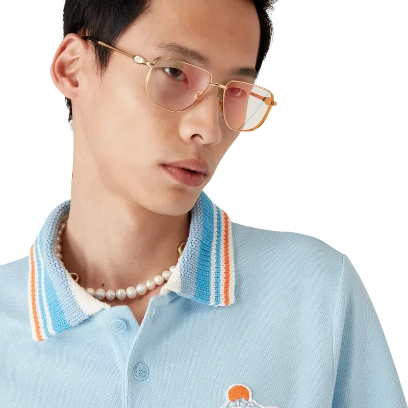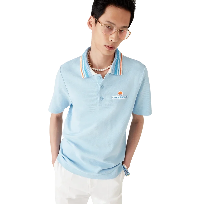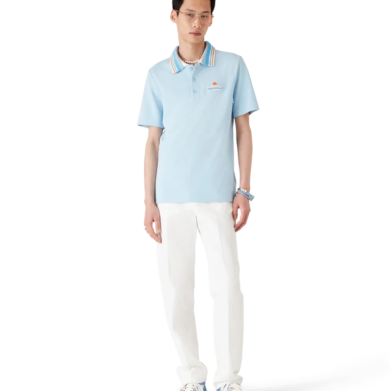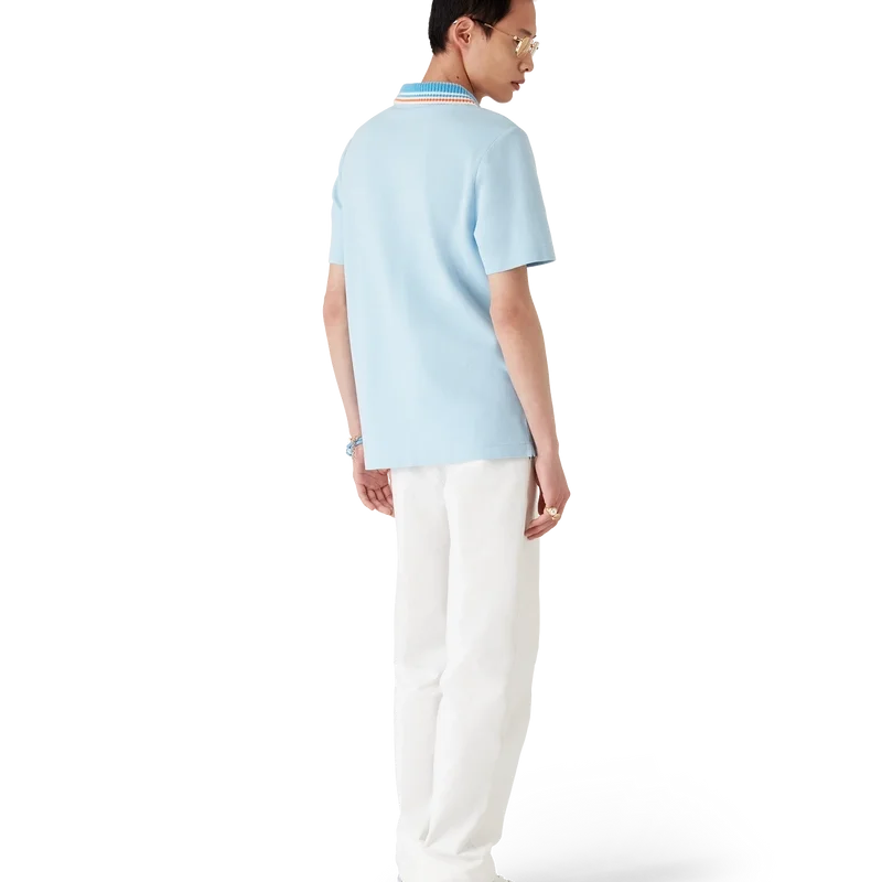 Het gebreide piqué poloshirt met korte mouwen is een klassiek ontwerp met het Casa Montagne-tekstlogo – een logo dat op het eerste gezicht op een berg lijkt, maar als je beter kijkt, leesbaar is als Casa – vervaardigd van biologisch katoenpiqué. Afgewerkt met knoopsluiting, interlocking Cc-logo Corozo-knopen en een oranje, blauw en wit gestreepte gebreide ribkraag.