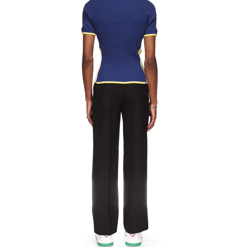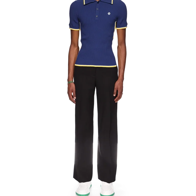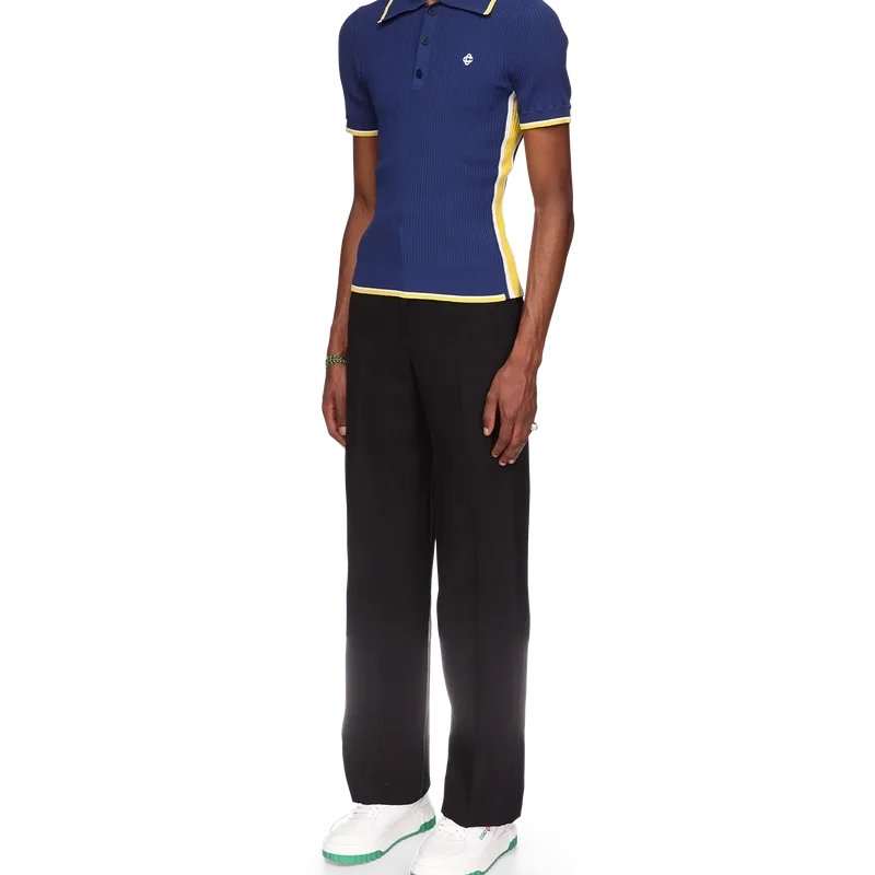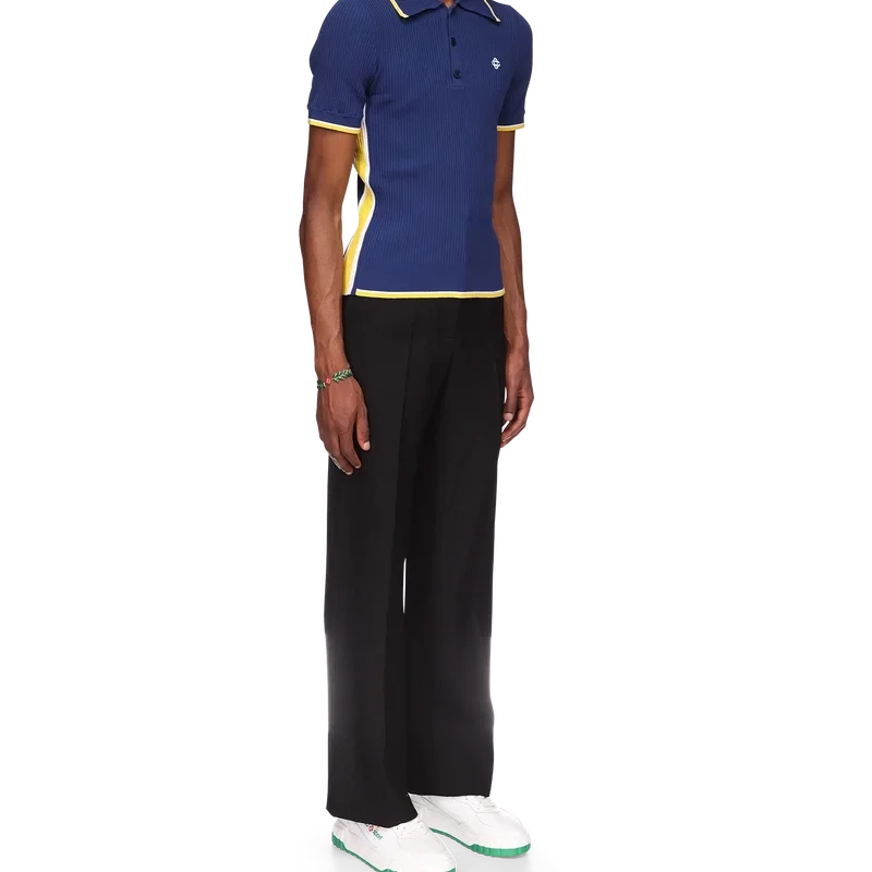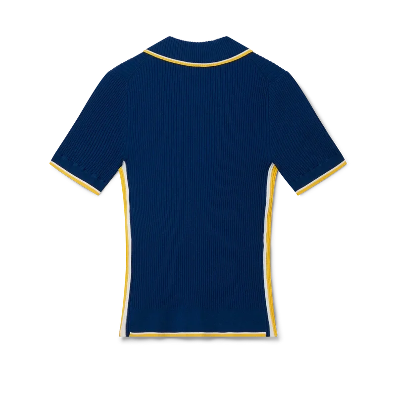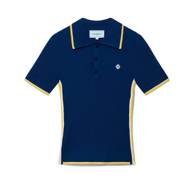 Het geribde poloshirt is gemaakt van een geribde stof van een viscosemix. Afgewerkt met contrasterende details op de kraag, manchetten en zoom, gele en witte strepen aan de zijkanten, de kenmerkende Cc-logo-knopen van het huis en een geborduurd Cc-logo op de borst.