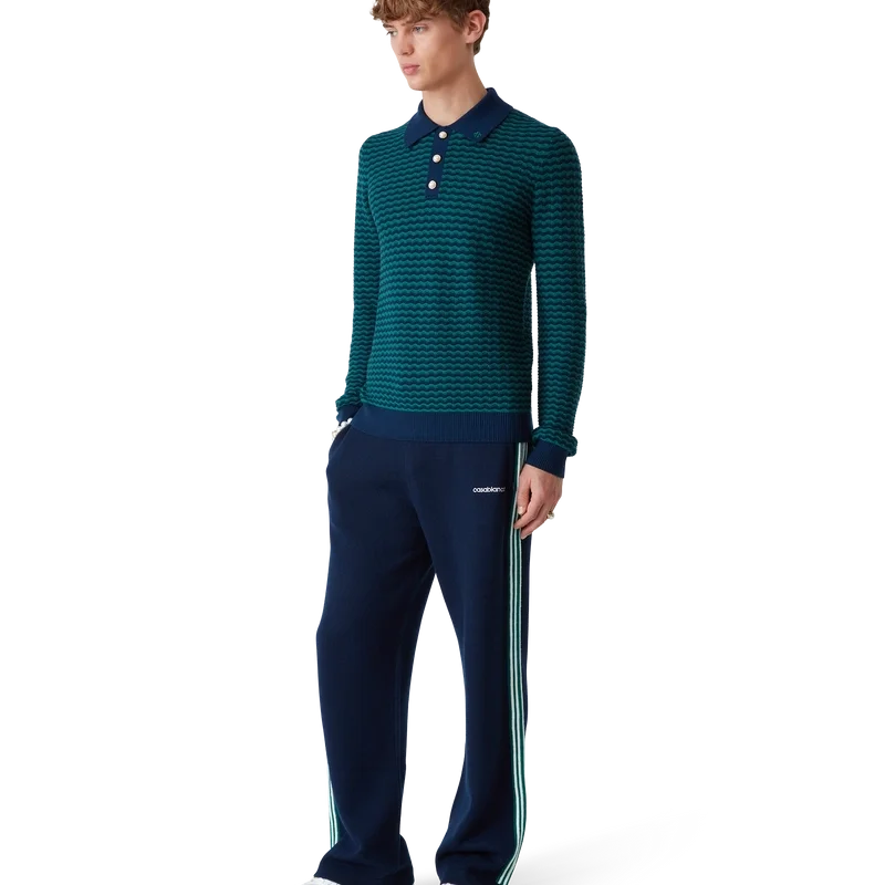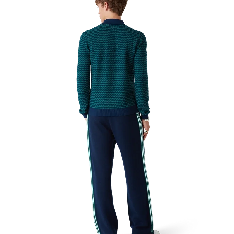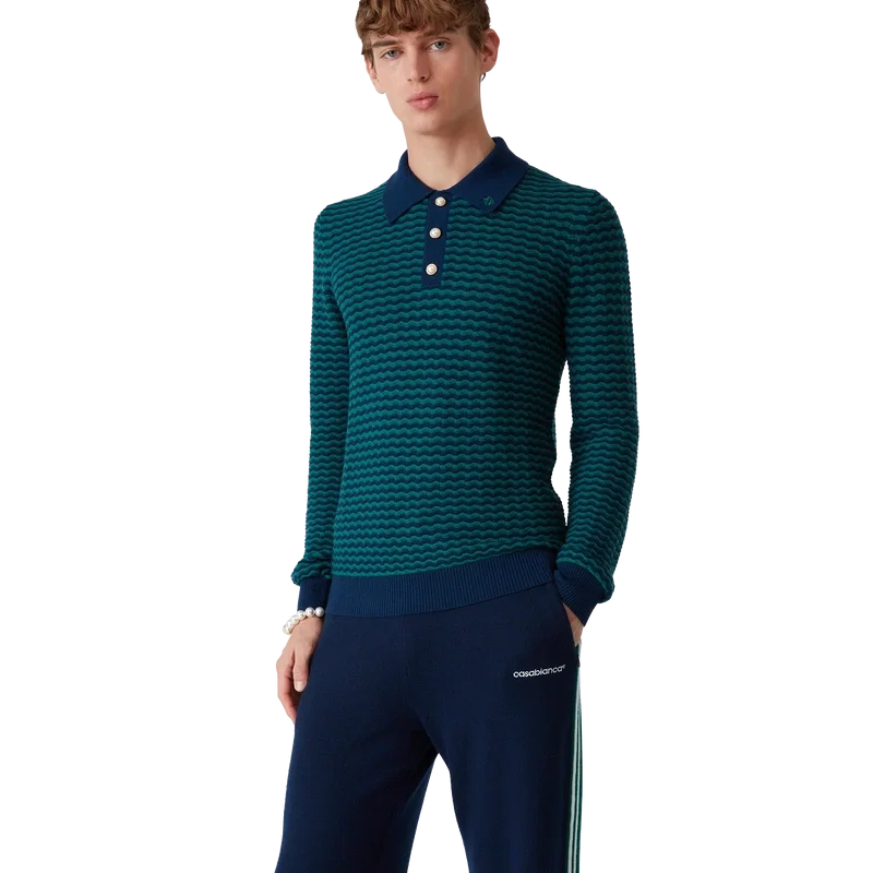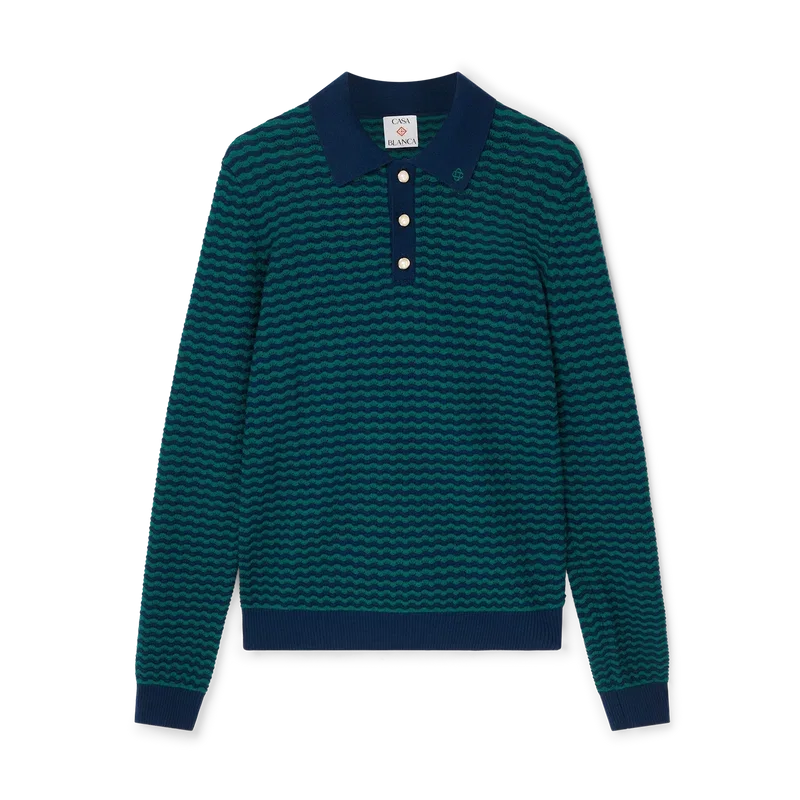 Het Mini Wave poloshirt is een klassiek ontwerp met lange mouwen, vervaardigd uit merinowol. Afgewerkt met geribde kraag, manchetten, zoom, knoopsluiting en kenmerkende parelknopen met gouden rand.