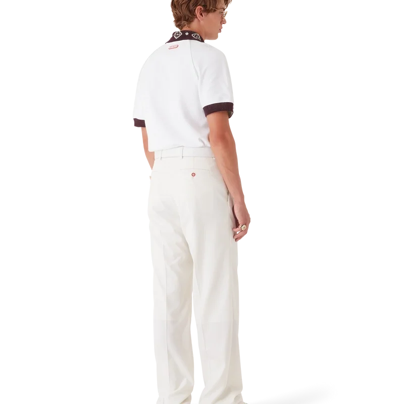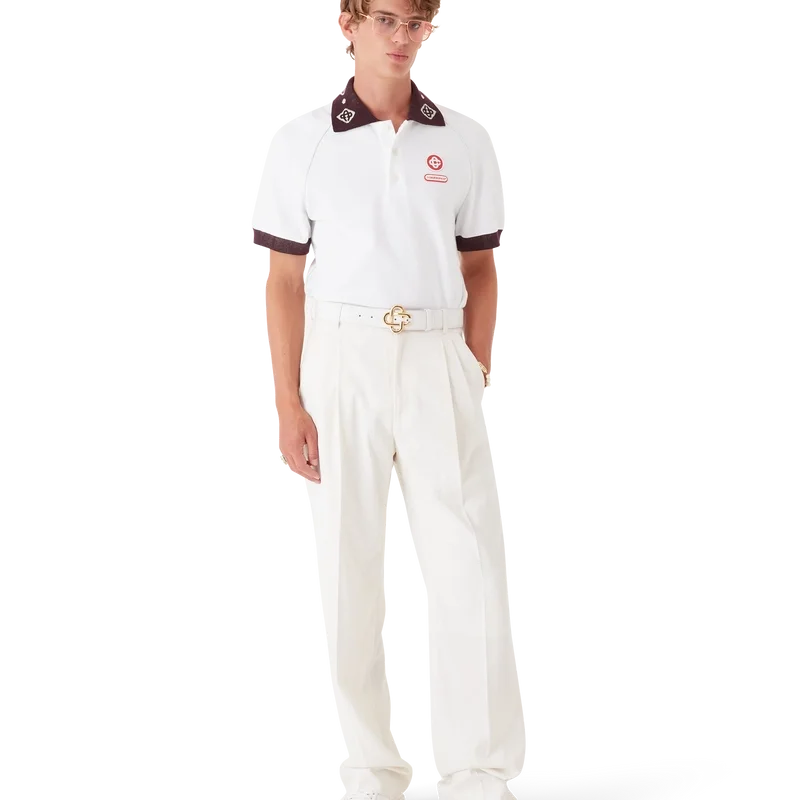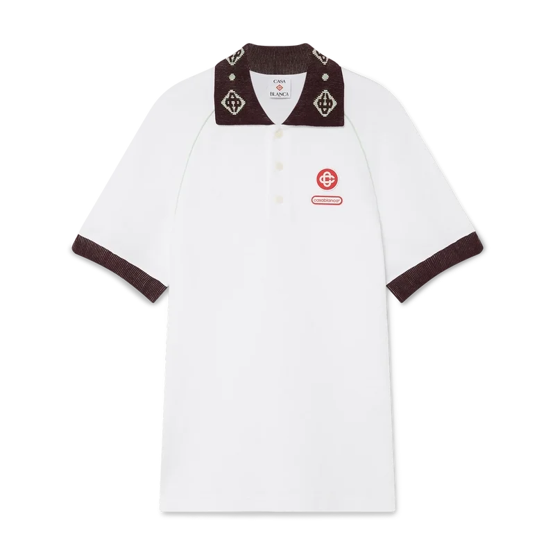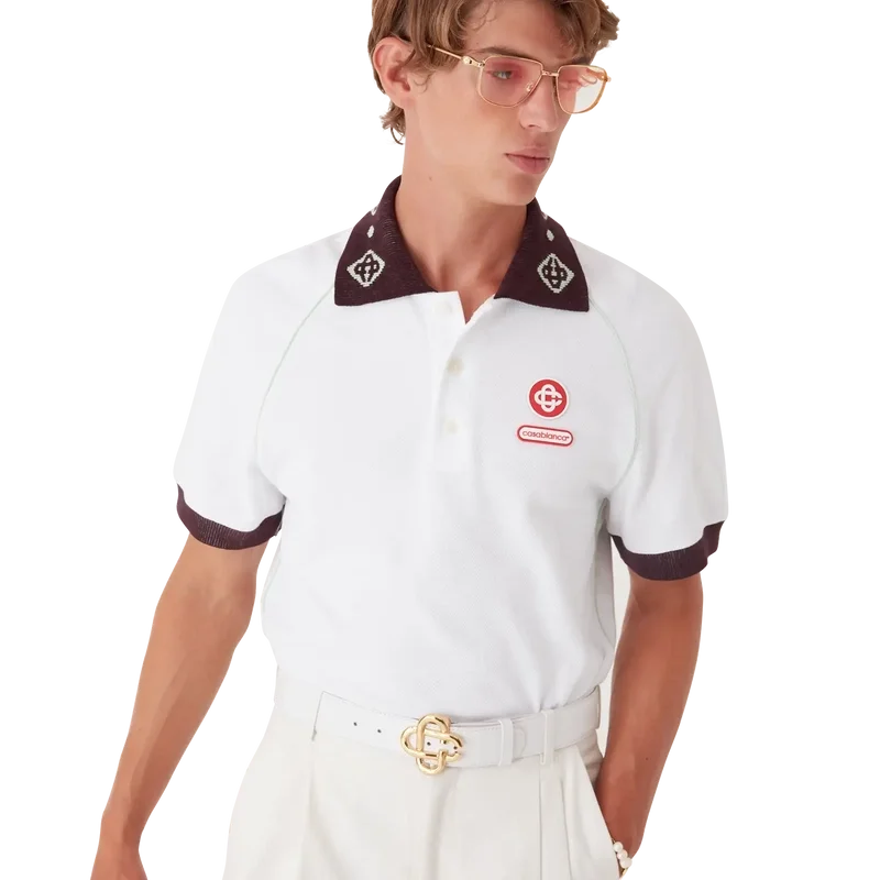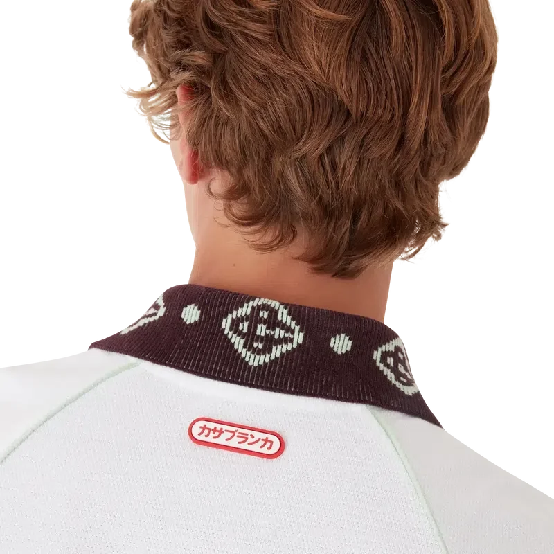 Een piqué Poloshirt is een klassiek model met het CC-logo van het huis en een Casablanca-logopatch, vervaardigd van biologisch katoenpiqué. Afgewerkt met een contrasterende gebreide kraag met ons kenmerkende in elkaar grijpende CC-logo, contrasterende manchetten, een sluiting met drie knopen, raglanmouwen, in elkaar grijpende CC-logo-knopen van corozo en een Casablanca-logo onder de kraag in het Japans.