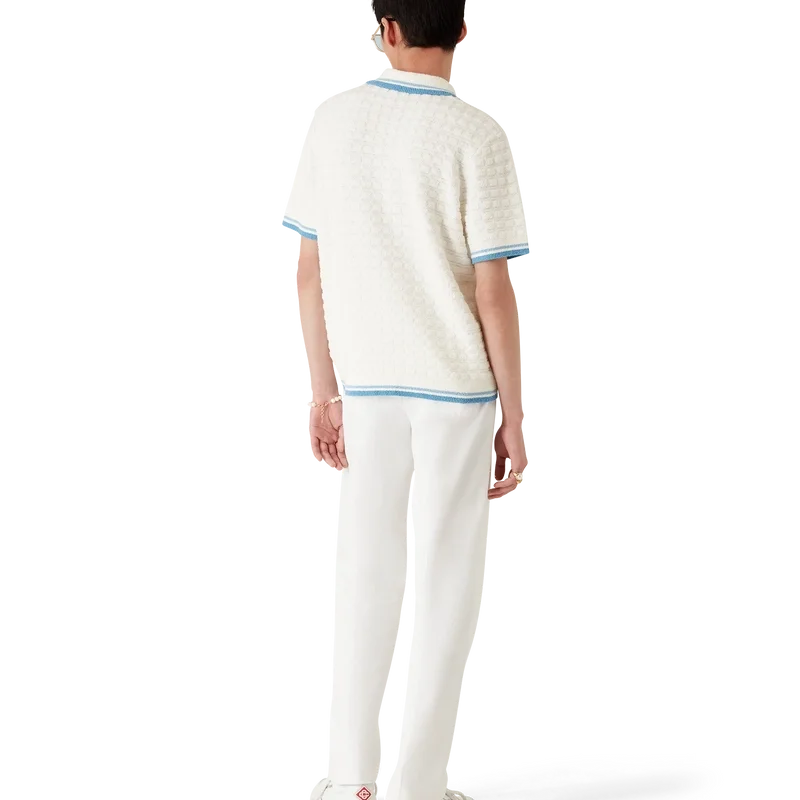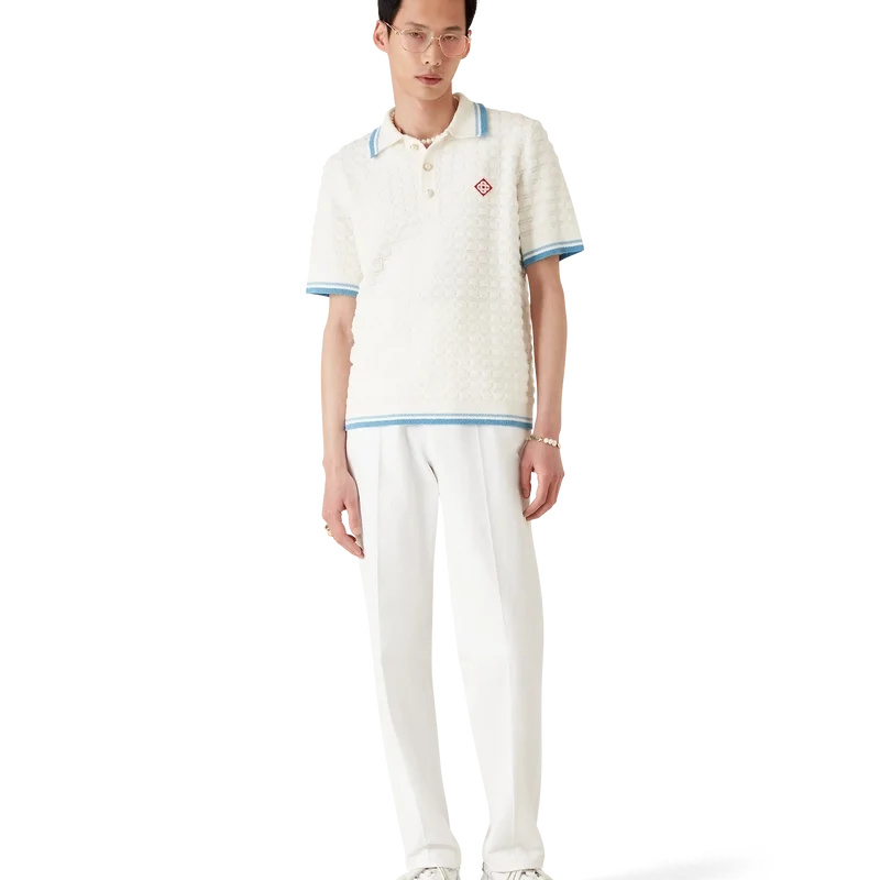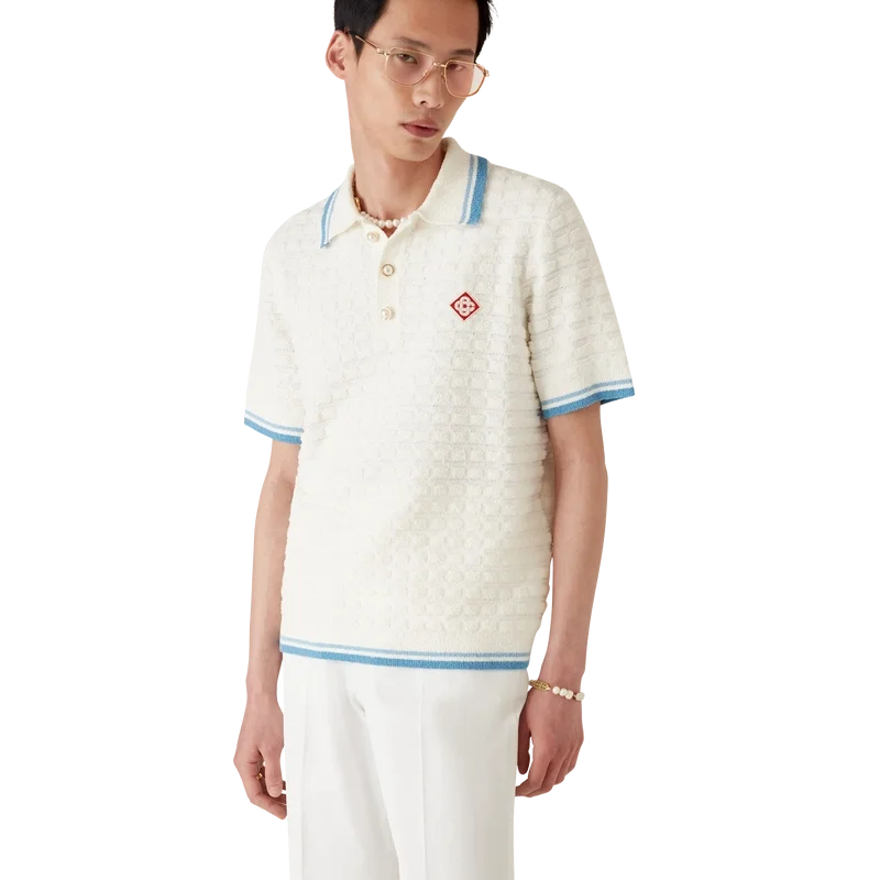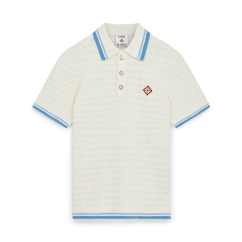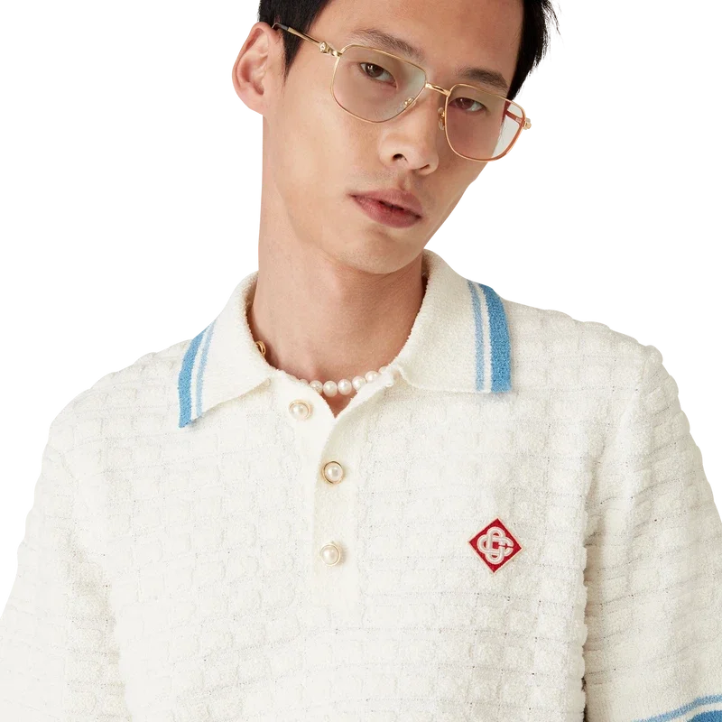 Het bouclé Poloshirt met korte mouwen is een klassiek ontwerp, vervaardigd van katoenbouclé met het kenmerkende diamantlogo van het huis. Afgewerkt met kenmerkende parelknopen met gouden rand, een geribde kraag, manchetten, knoopsluiting en zoom.