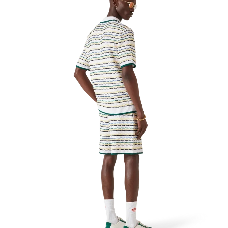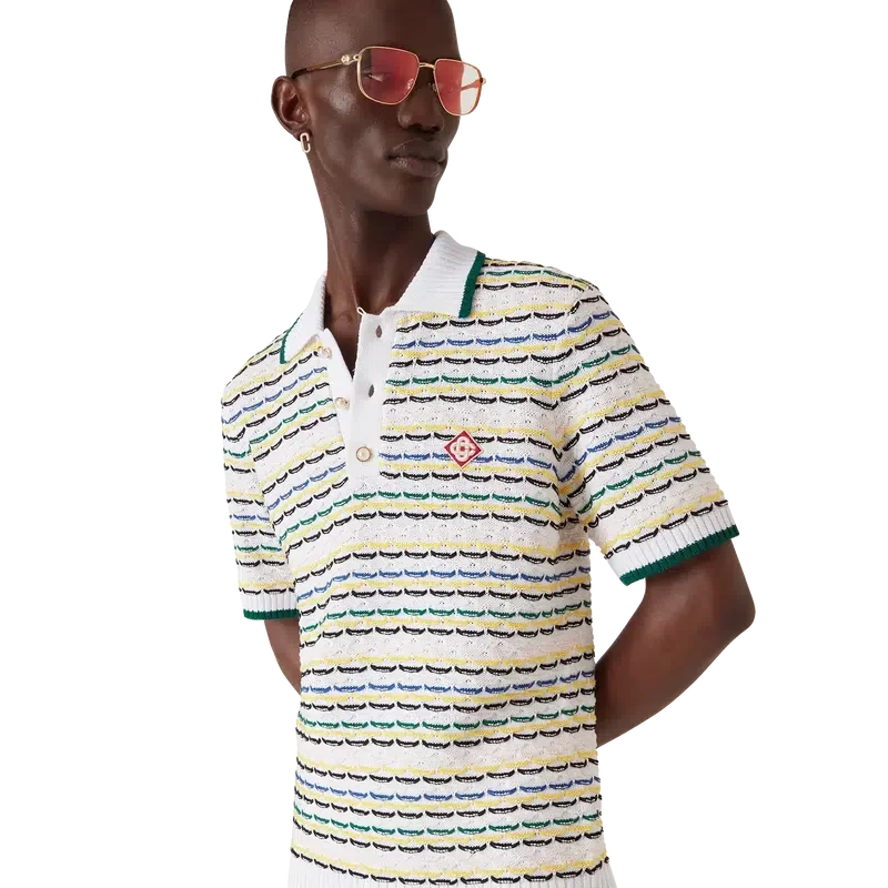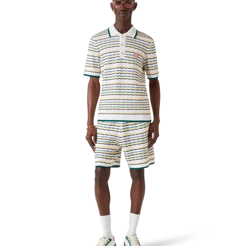 Het Tuck Stitch overhemd met korte mouwen is een gebreid ontwerp met het kenmerkende diamantlogo van het huis. Afgewerkt met knoopsluiting, kenmerkende parelknopen met gouden rand en geribde kraag, manchetten en zoom met randdetail.