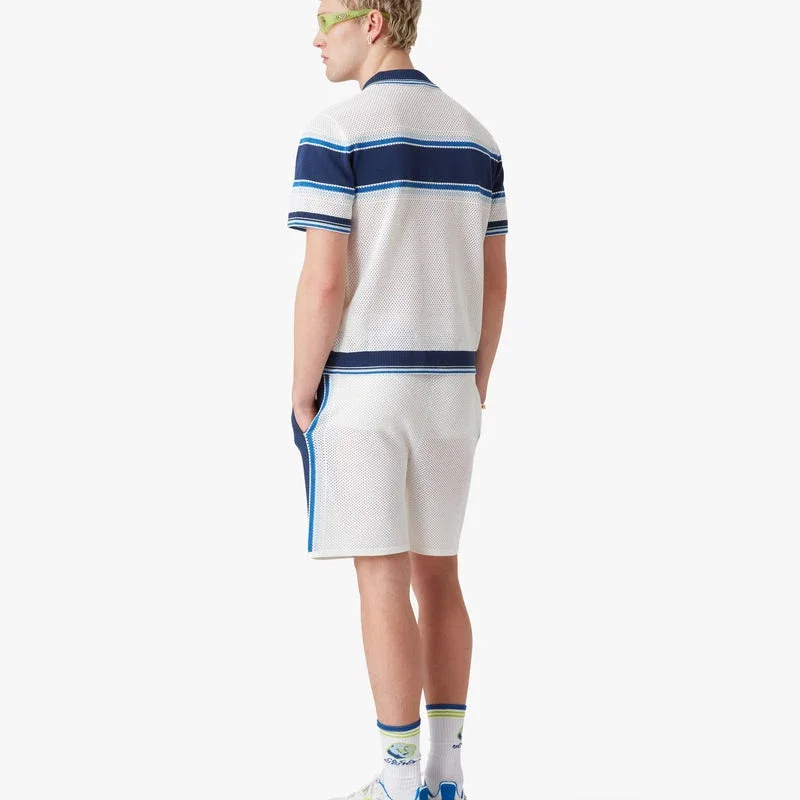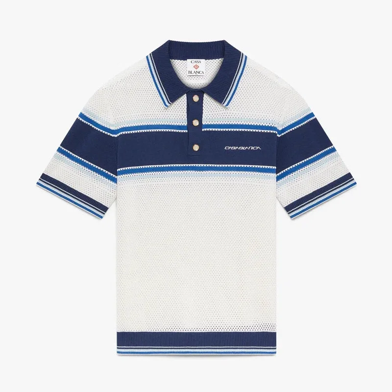 Wit-blauw gestreept mesh poloshirt met korte mouwen