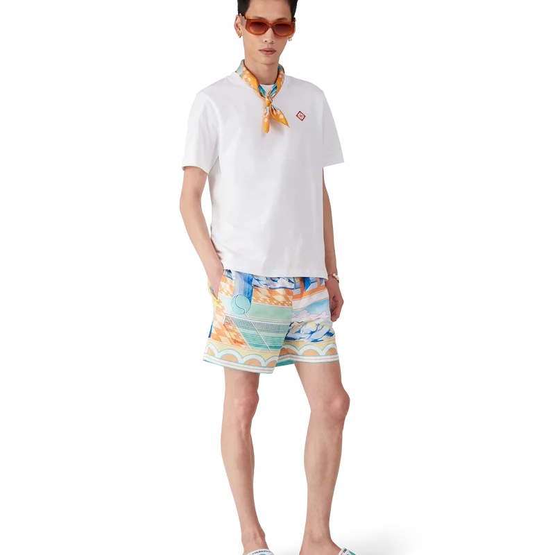 De Greco-Wave Terry-slippers zijn gemaakt van geborduurde badstof en voorzien van het seizoensgebonden kunstwerk van het huis op het bovenwerk. Afgewerkt met gewatteerde, rubberachtige zolen.