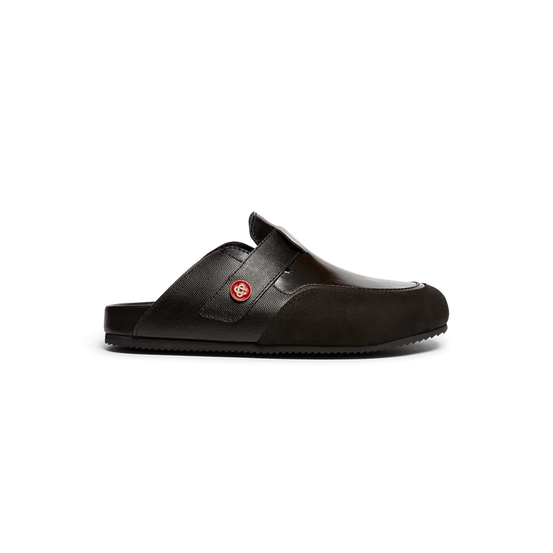 De leren outdoor muil is een plat, open model zonder achterkant, ideaal voor het tussenseizoen en voorkomt oververhitting. Afgewerkt met een verstelbare band en voorzien van het kenmerkende in elkaar grijpende CC-logo van het huis.