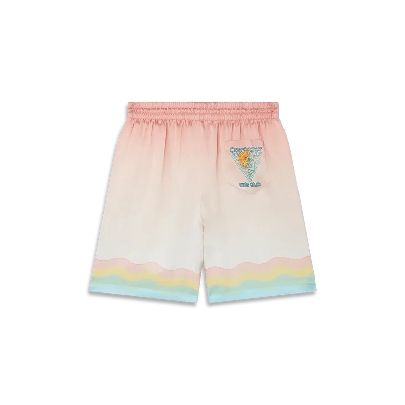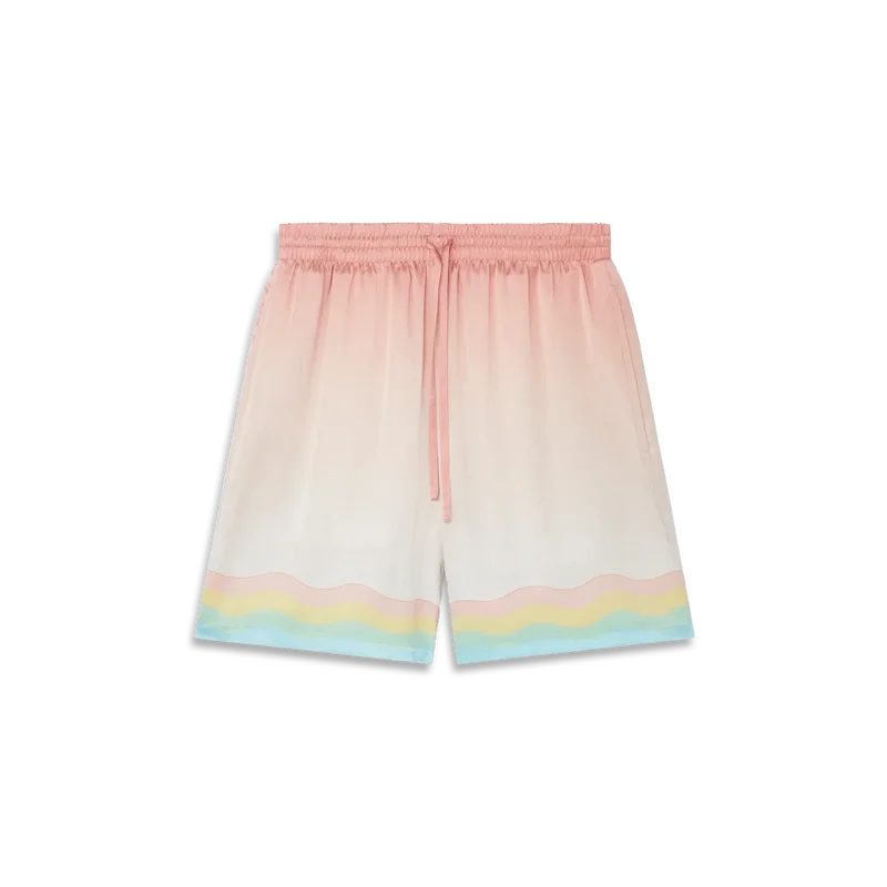 De Arts Club zijden Shorts in een roze ombre kleur met seizoensgebonden print. Afgewerkt met een elastische tailleband, trekkoordsluiting en zij- en achterzakken, valt los tot boven de knie.