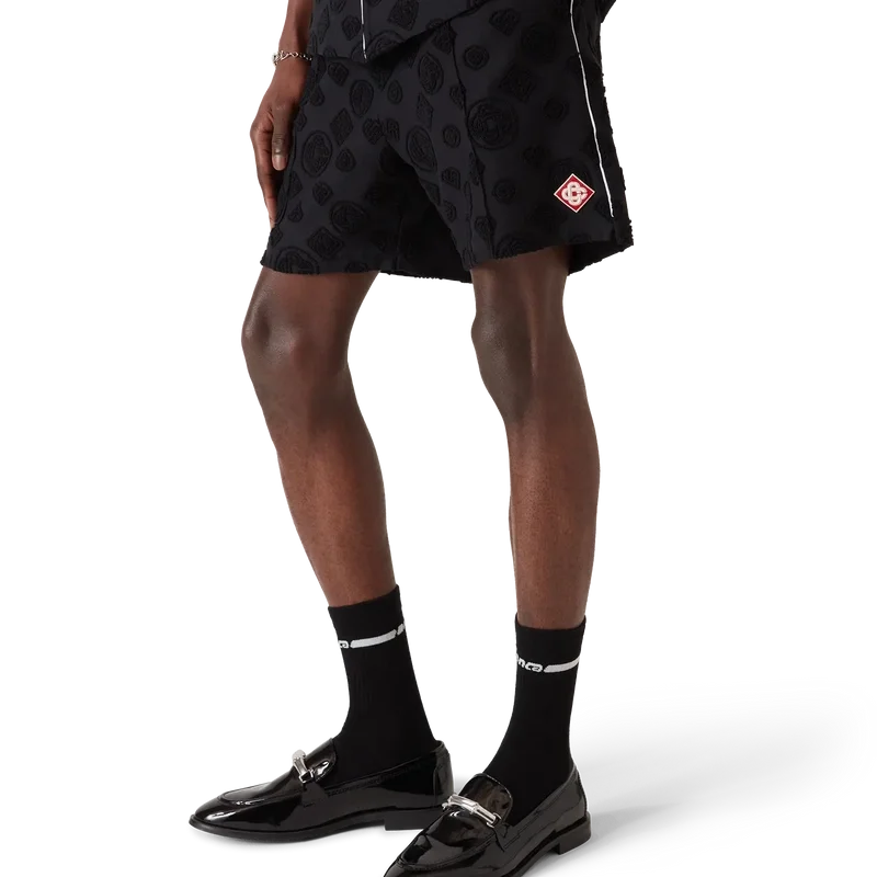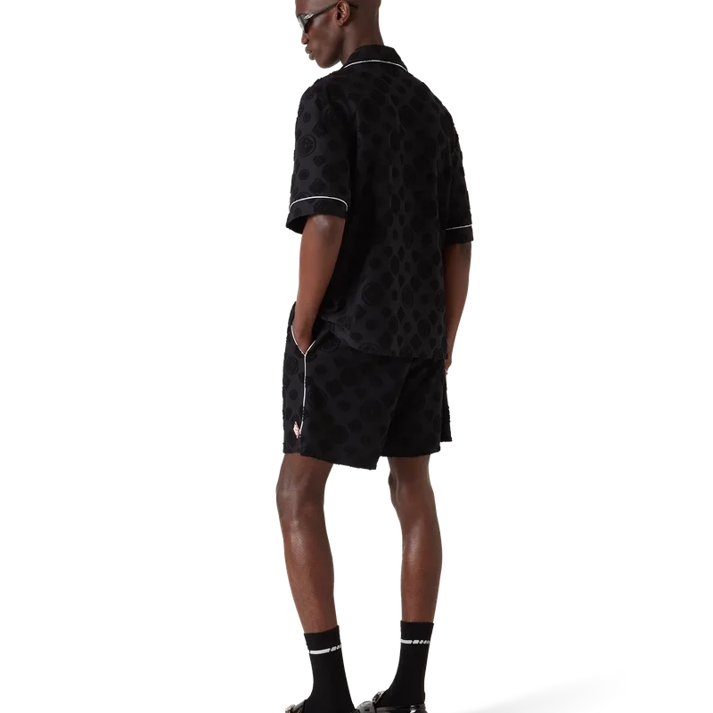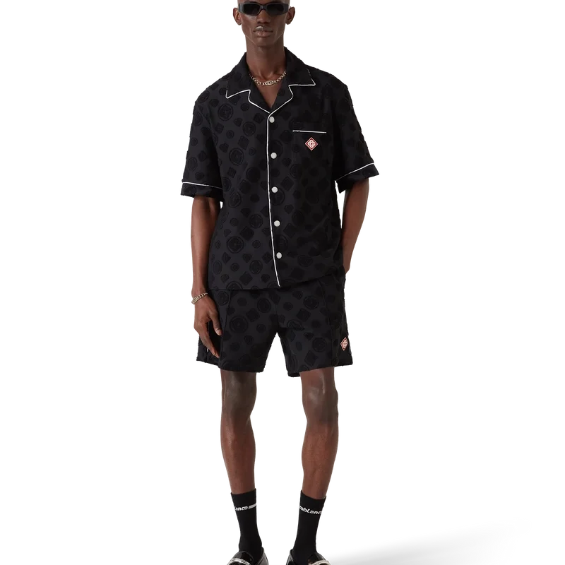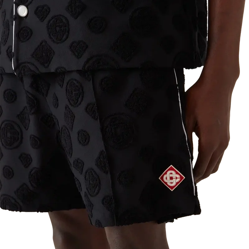 De Monogram-Shorts van badstof hebben een verfijnd ontwerp met de iconische Monogram-print van het huis. Afgewerkt met een elastische tailleband, een trekkoord met gouden uiteinden, plooien aan de voorkant, een achterzak, schuine zijzakken en biezen op de voor- en achterzakken en langs de zijkanten.