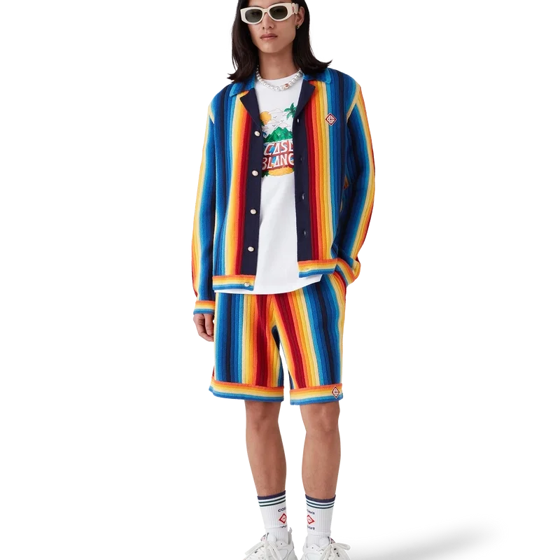 Badstofshort met kleurverloopstrepen