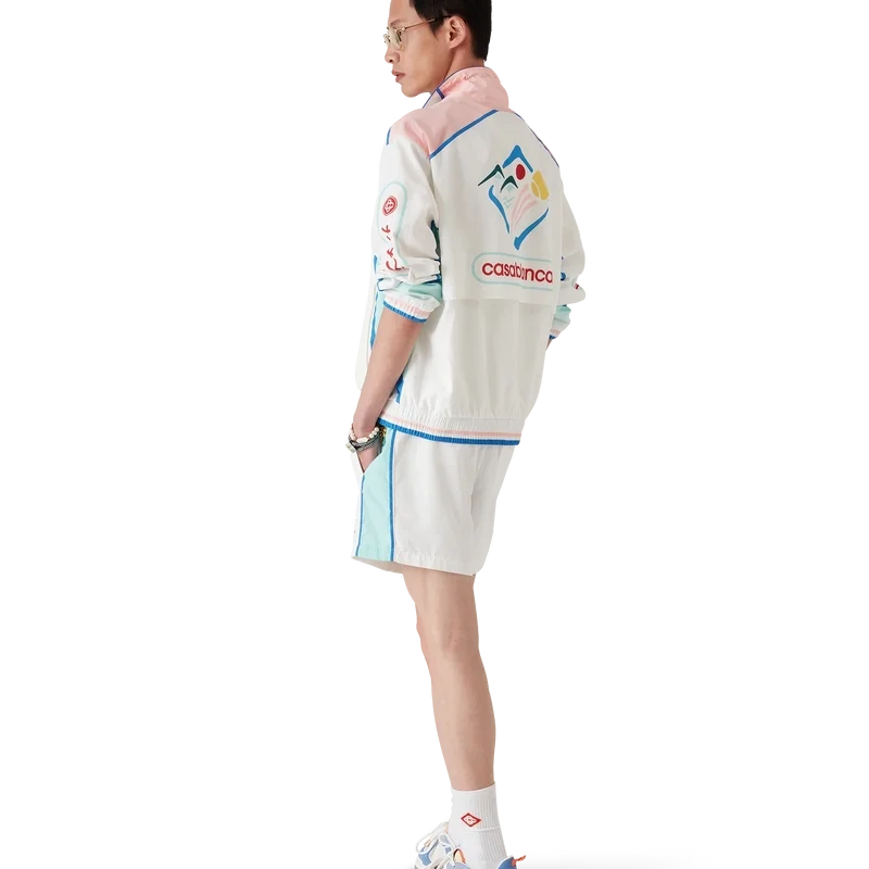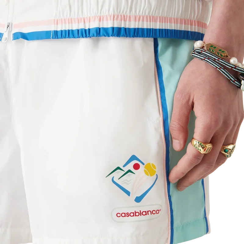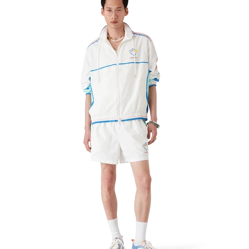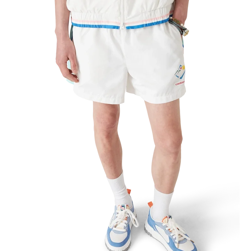 De Casa Sportif windbreaker-Shorts heeft een klassiek ontwerp en is gemaakt van polytaft. Afgewerkt met een elastische tailleband, trekkoordsluiting, blauwe strepen en biezen, steekzakken en een voering van mesh.