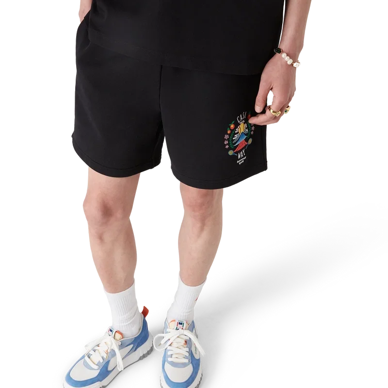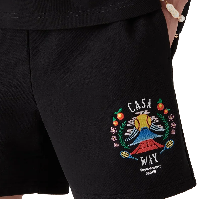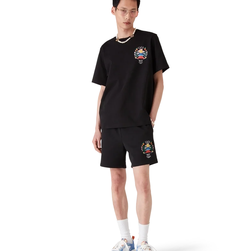 De Casa Way Mountain Sweatshorts zijn een sportkledingontwerp gemaakt van biologisch katoen met de seizoensgebonden kunst van het huis die het verhaal volgt van de iconografische stijl die we hebben verkend – digitaal ontworpen kunst die ons berglogo laat zien, met verschillende lijnen en kleurverlopen, die een sterke branding creëren.