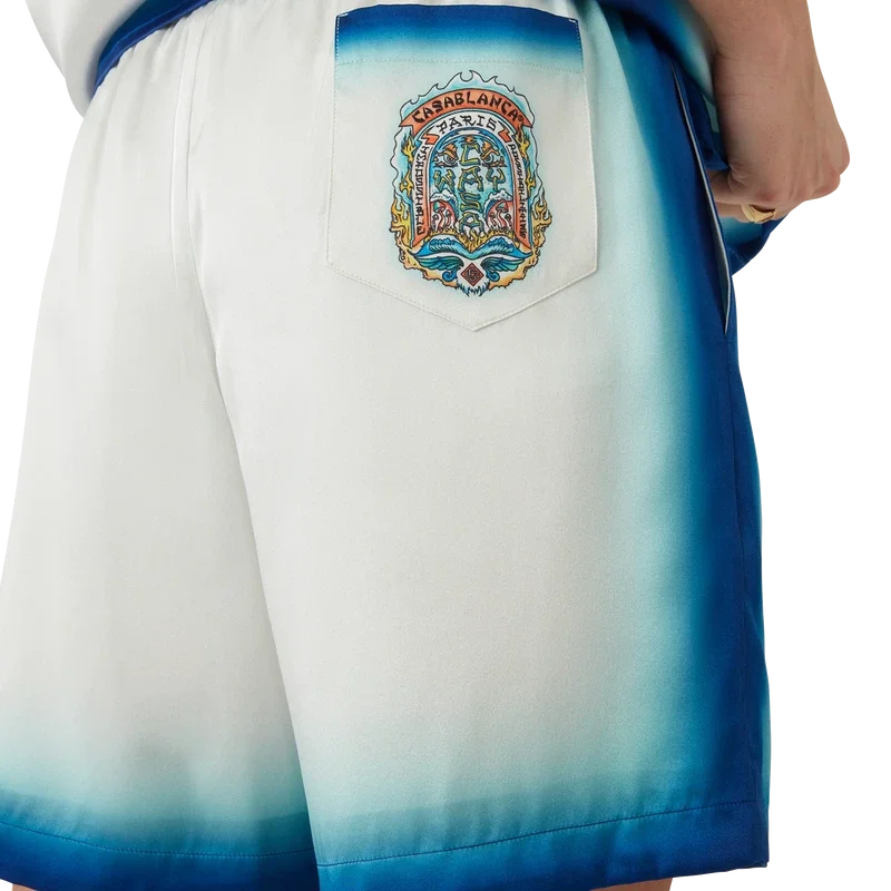 De Casa Way Skate zijden Short is een klassiek ontwerp, vervaardigd van zijden satijn met het Casa Way Skate-ontwerp van dit seizoen, geïnspireerd op klassieke Californische skate-insignes uit de jaren 70 met een vervagend kader. Afgewerkt met een elastische tailleband, trekkoordsluiting, zijzakken in de naad en een opgestikte achterzak.