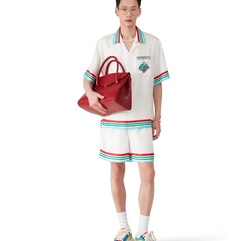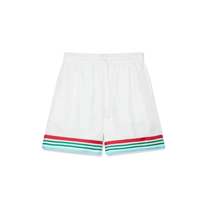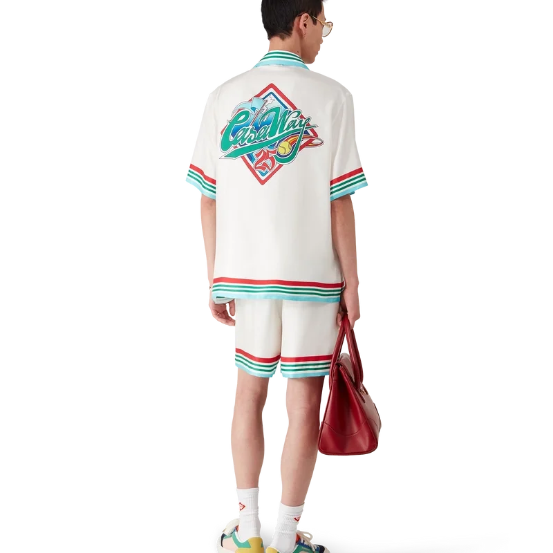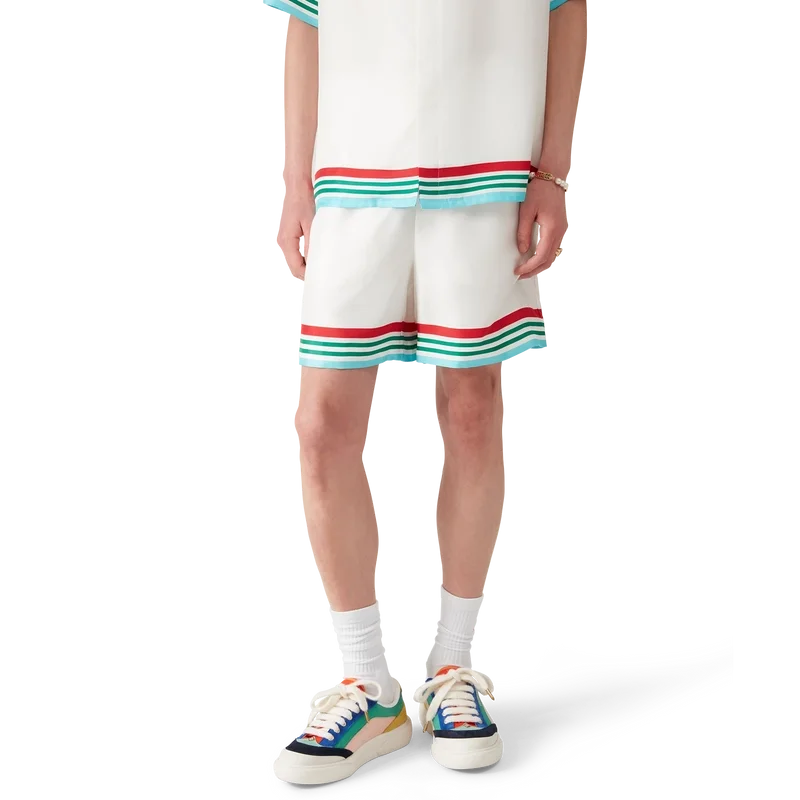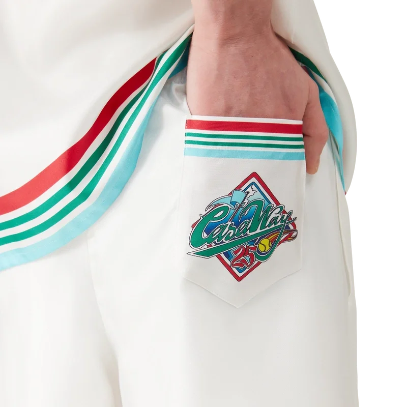 De Casa Way World Series zijden short is een klassiek ontwerp, vervaardigd uit zijden twill met de Casa Way World Series van dit seizoen, een nieuwe interpretatie van het klassieke All-American baseball-logo voor Casa Way Tennis. Afgewerkt met een elastische tailleband, trekkoordsluiting, zijzakken in de naad, gestreepte zoom en zakdetails, en een opgestikte achterzak.