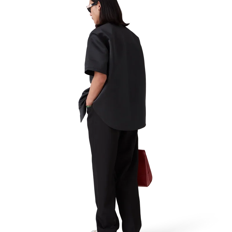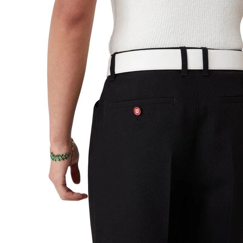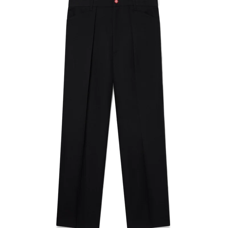 De chino met plooien heeft een rechte pijp, is gemaakt van wol en heeft een voering van een katoenmix. Afgewerkt met schuine zakken aan de voorkant, riemlussen, ritssluiting en paspelzakken aan de achterkant.