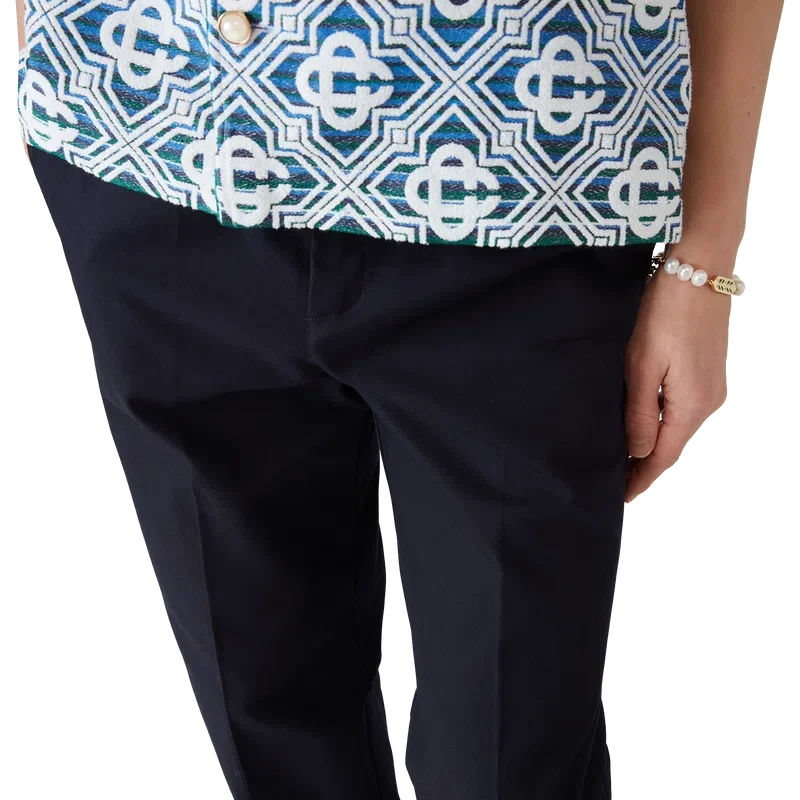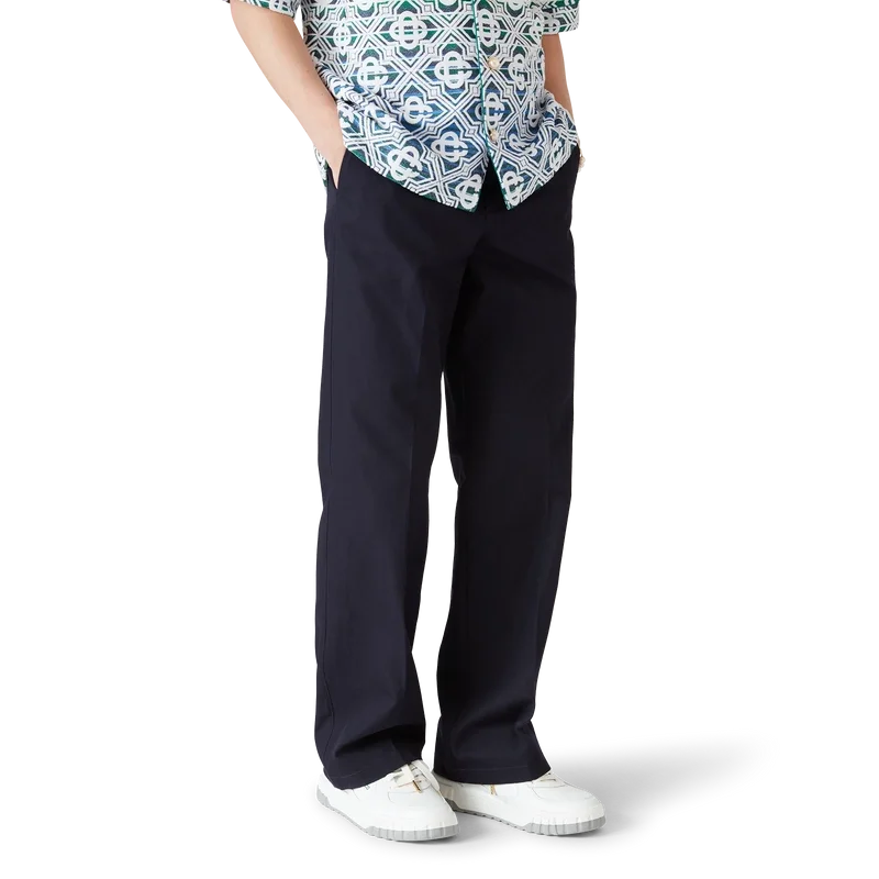 Afgewerkt met riemlussen, een ritssluiting, schuine zijzakken en een paspelzak aan de achterkant – Ontworpen voor een relaxte pasvorm.