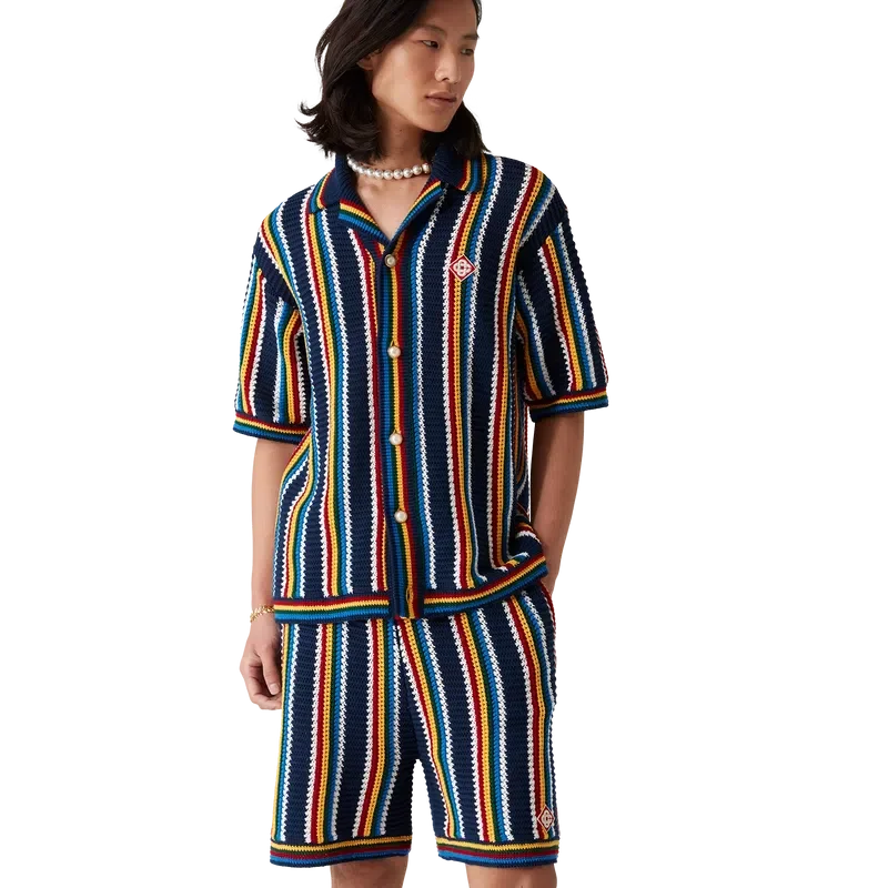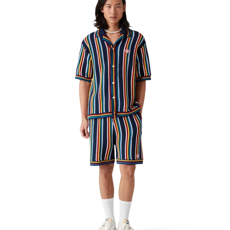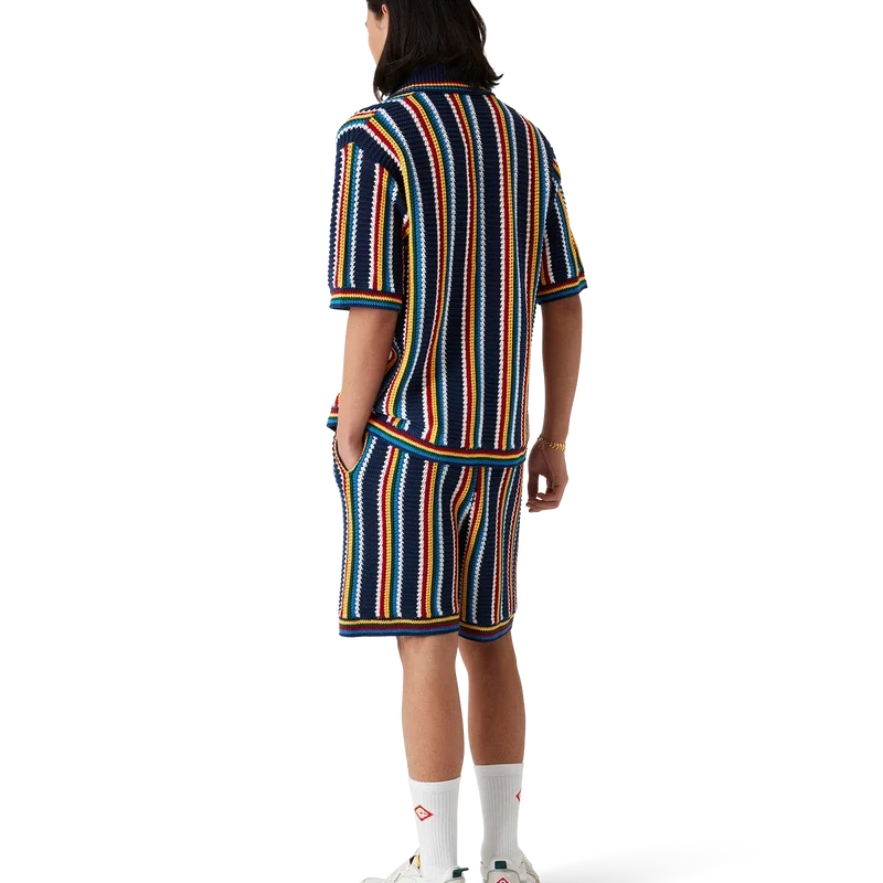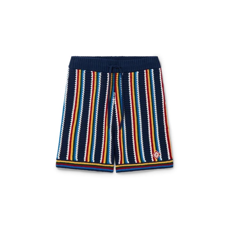 De Crochet Stripe Shorts is een gestreept ontwerp met textuur, vervaardigd uit gehaakte katoen met het kenmerkende diamantlogo van het huis. Dit klassieke kledingstuk is afgewerkt met een elastische tailleband, trekkoordsluiting en horizontale streepjes aan de zoom.