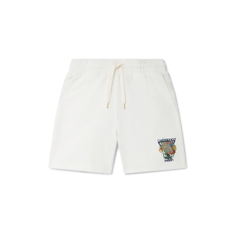 De Fond Marin gebroken witte geborduurde sweatshorts zijn voorzien van een seizoensgebonden kunstwerk geïnspireerd op het werk van de Mexicaanse kunstenaar Pedro Linares. De fantastische wezens vormen een hallucinante reis door het dierenrijk. De Shorts zijn gemaakt van 100% biologisch katoen, vallen boven de knie en zijn afgewerkt met een trekkoord met gouden uiteinden en zijzakken.
