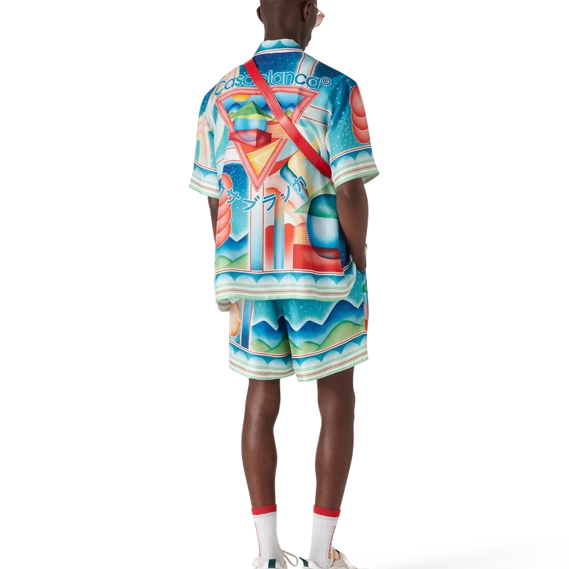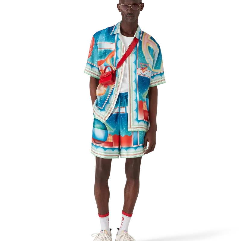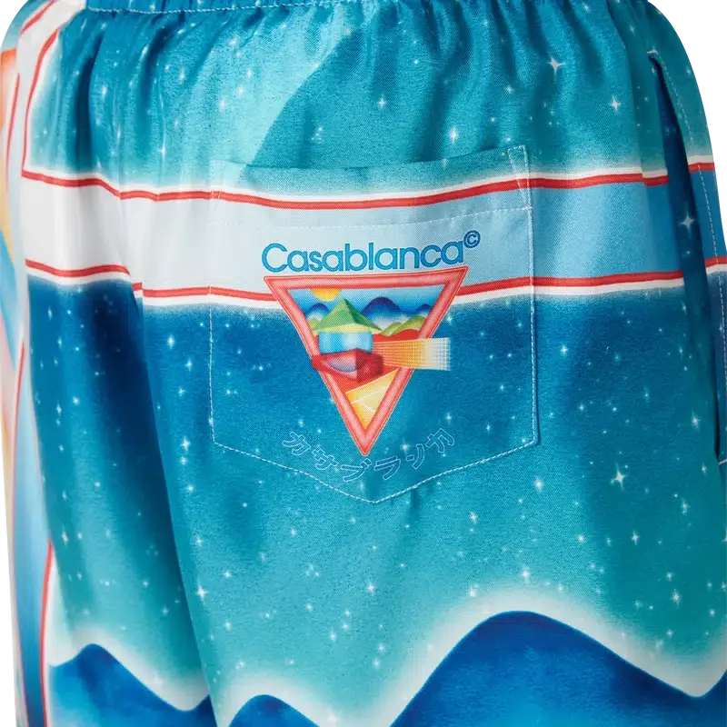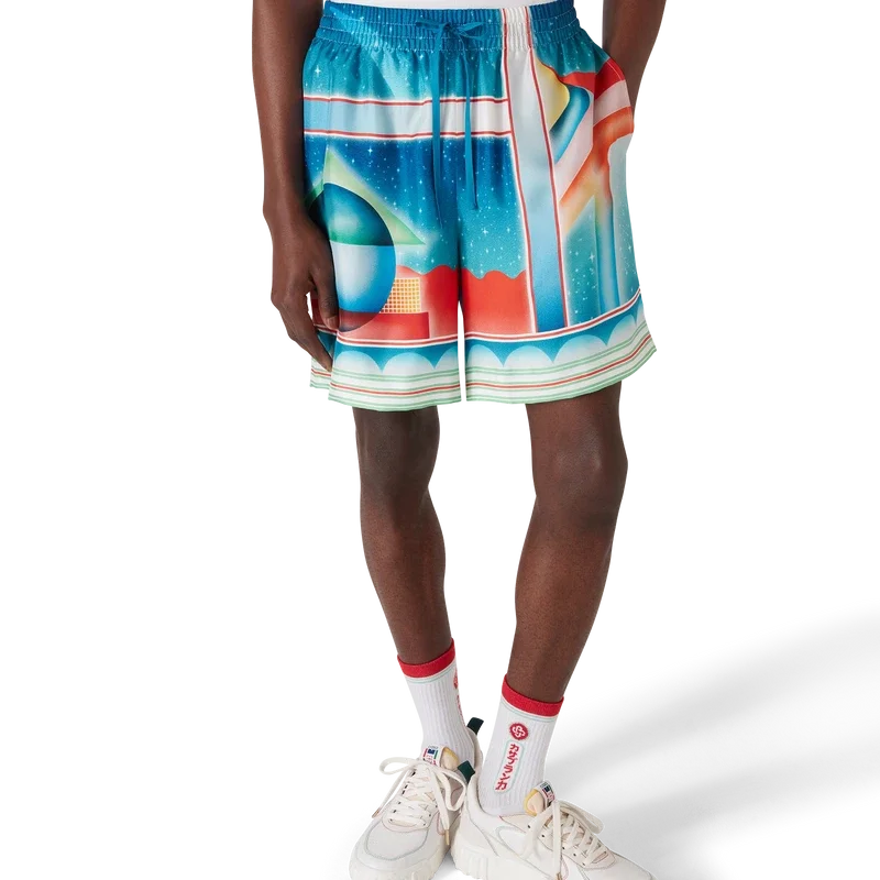 De Galaxy Court zijden short heeft een all-over print en is gemaakt van zijden twill. Afgewerkt met een elastische tailleband, trekkoordsluiting, voering, steekzakken aan de zijkant en een achterzak.