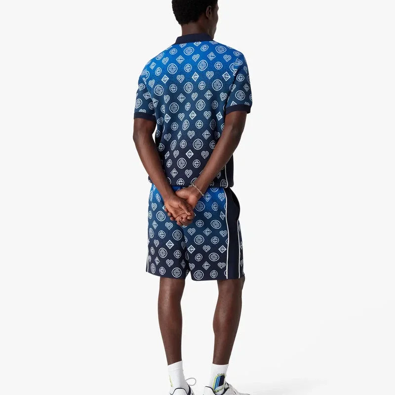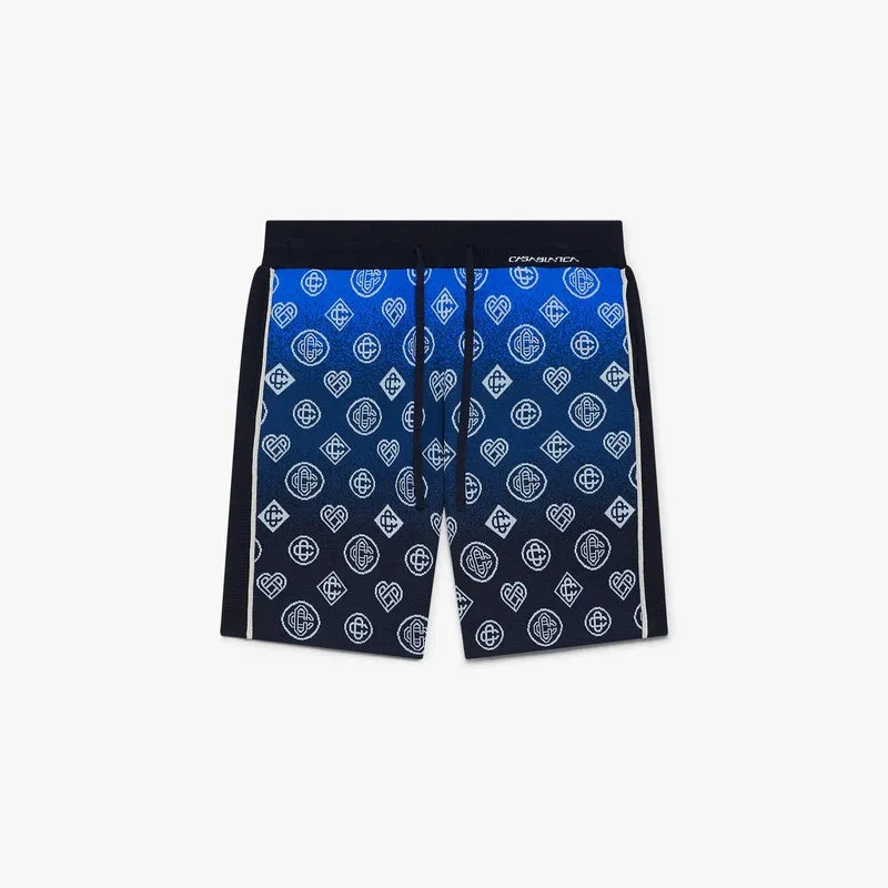 De gebreide shorts met monogram in kleurverloop hebben een verfijnd ontwerp, met het iconische monogrampatroon van het huis op een achtergrond met kleurverloop. Afgewerkt met een elastische tailleband, trekkoordsluiting, zijzakken in de naad en een achterzak.