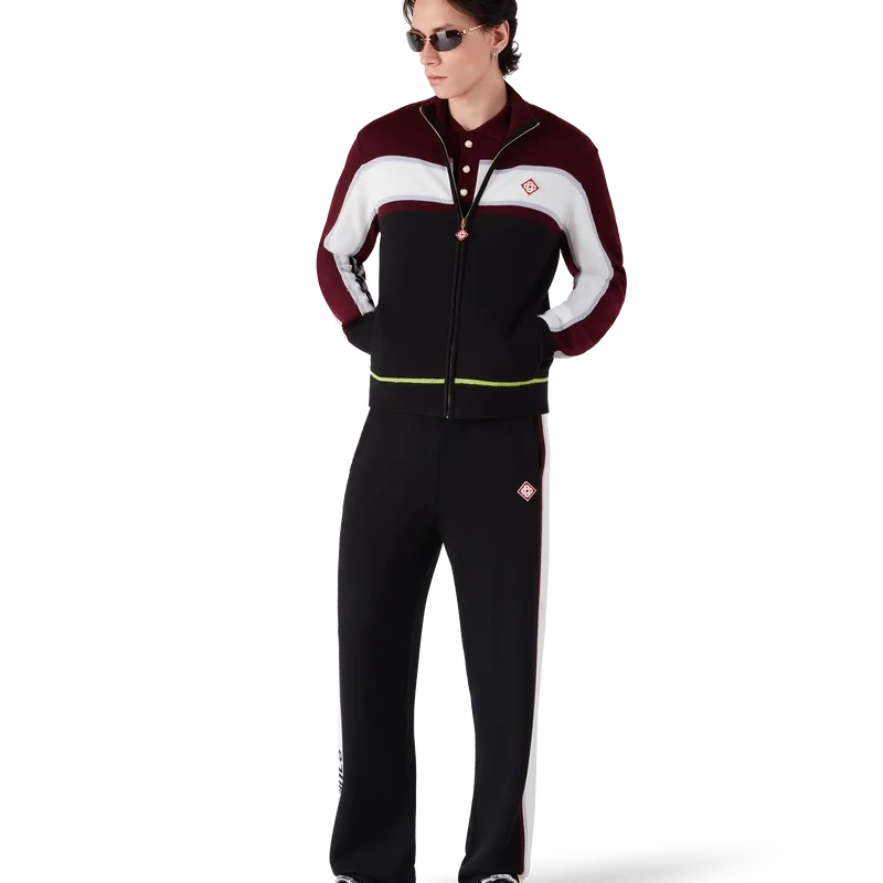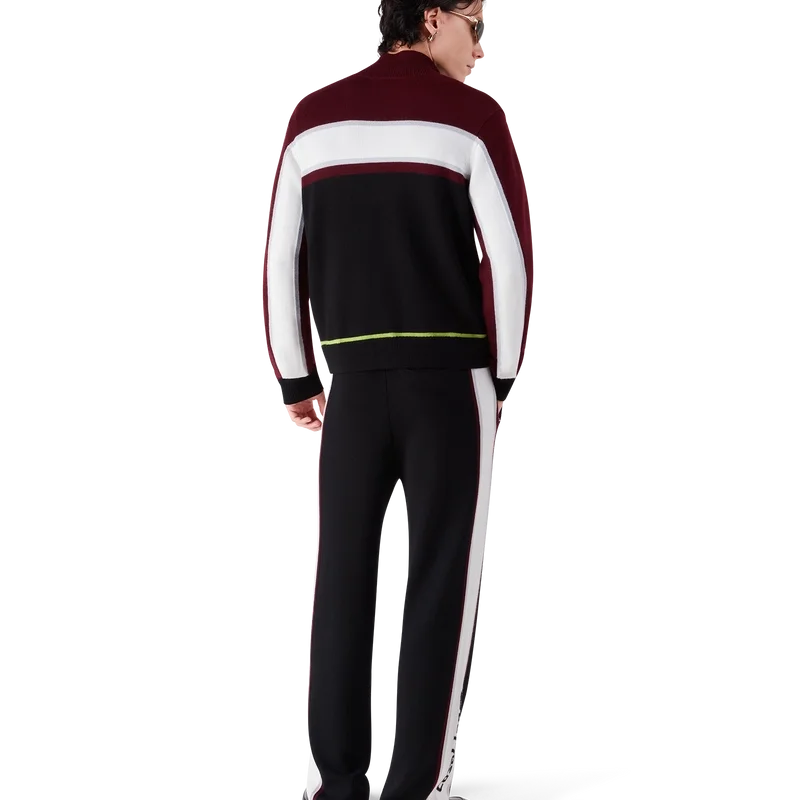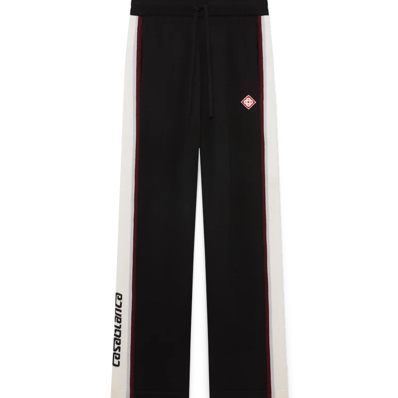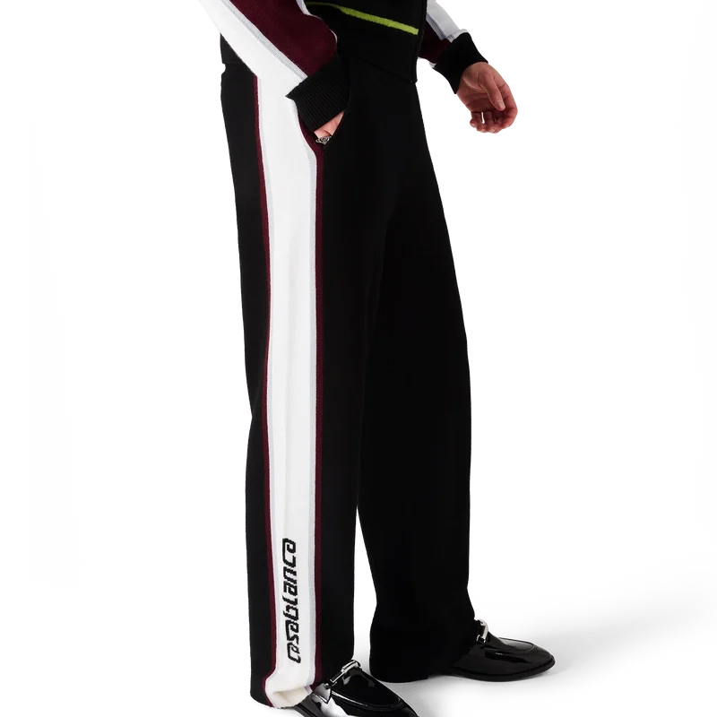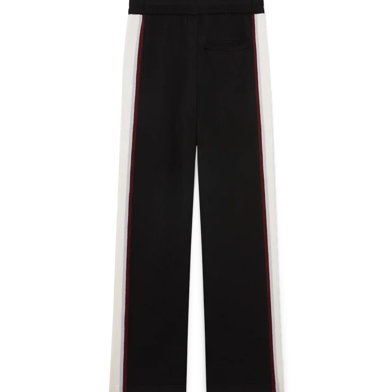 De gestreepte merino broek heeft een verfijnd ontwerp en is gemaakt van merinowol met een gestructureerde gebreide constructie. Afgewerkt met een elastische tailleband en een relaxte pasvorm die sportief comfort combineert met verfijnde snit.