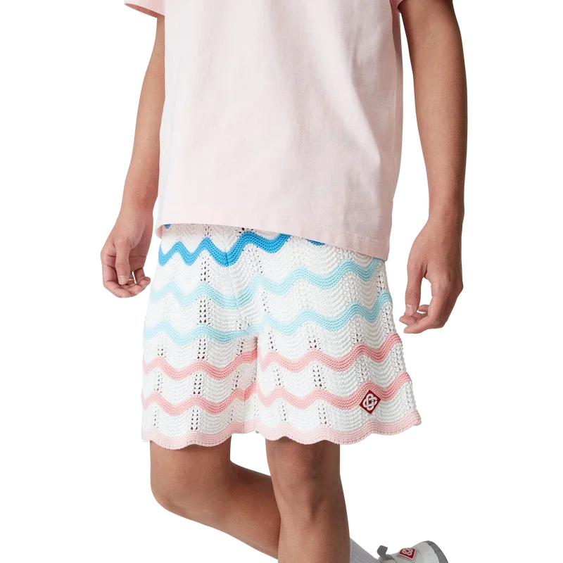 De Gradient Wave Crochet Shorts zijn een klassiek ontwerp, vervaardigd van gehaakte katoenen stof en voorzien van het op de Memphis Wave geïnspireerde ontwerpelement. Afgewerkt met een elastische tailleband, het diamantlogo van het huis en randdetails met golfpatroon.