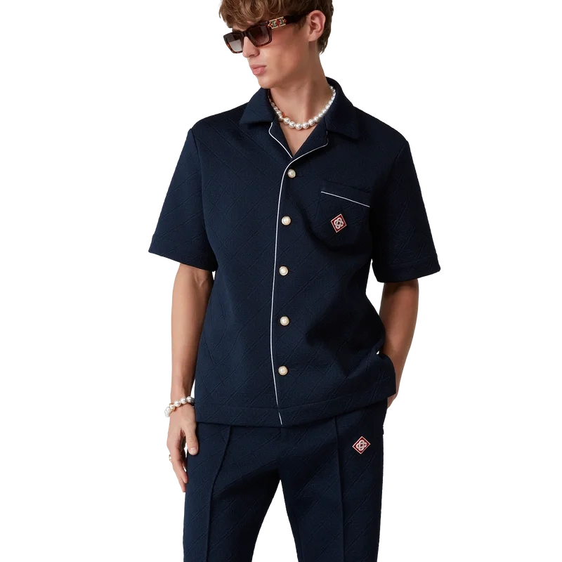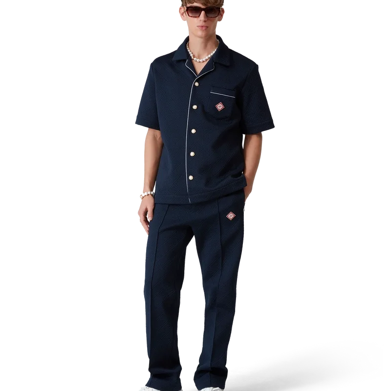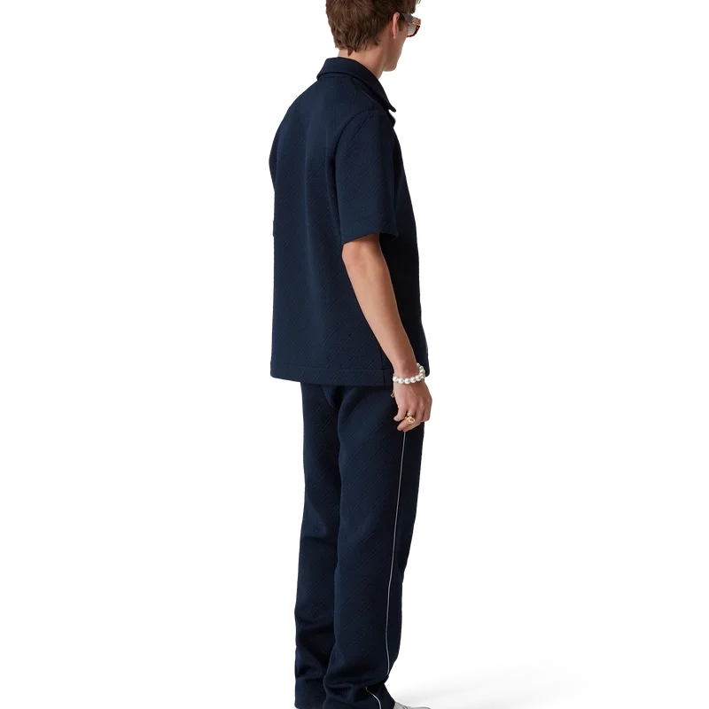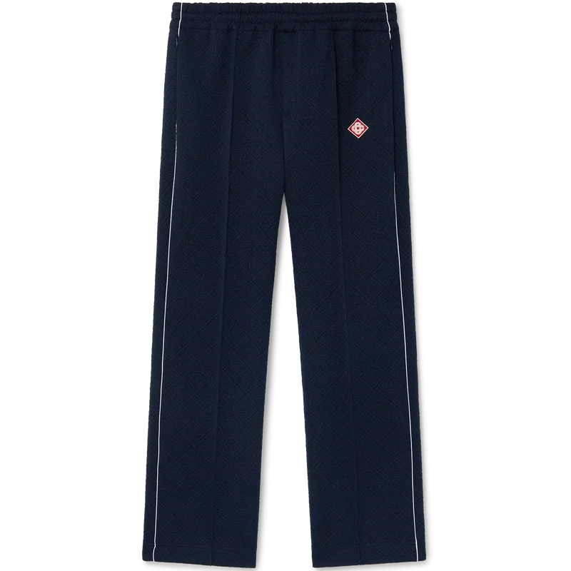 De Jacquard Monogram trainingsbroek is een sportief ontwerp met rechte pijpen, vervaardigd uit een jacquard gebreide stof. Afgewerkt met een elastische tailleband met trekkoord, zijzakken, plooien aan de voorkant, contrasterende biezen aan de zijkanten en het kenmerkende diamantlogo van het huis.