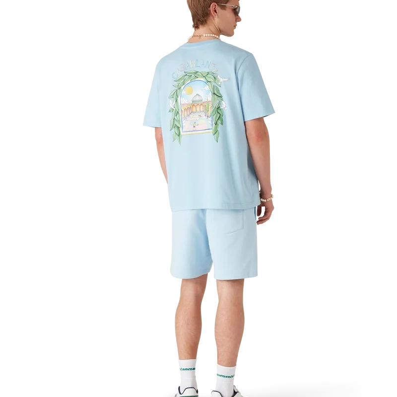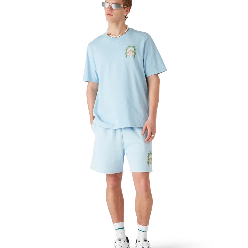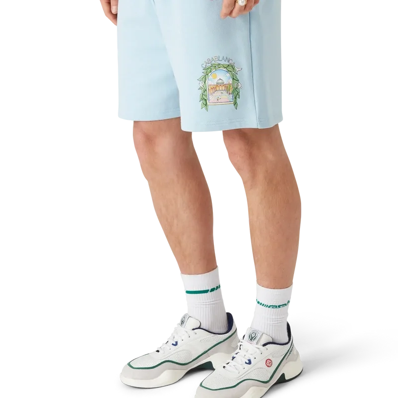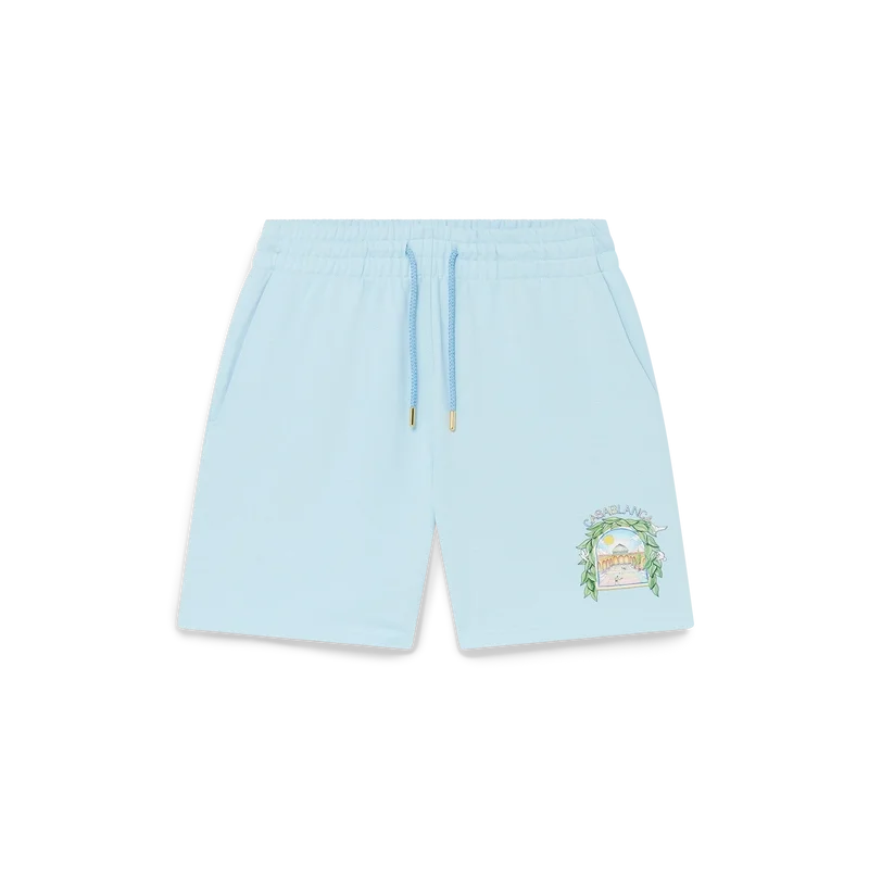 De Casa L’arche-sweatshorts hebben een verfijnd bedrukt ontwerp met de seizoensgebonden kunstwerken van het huis en ontwerpelementen van de boog, de natuur, architectuur en tennis. Afgewerkt met een elastische tailleband, een trekkoord met gouden uiteinden, zijzakken en een opgestikte achterzak.