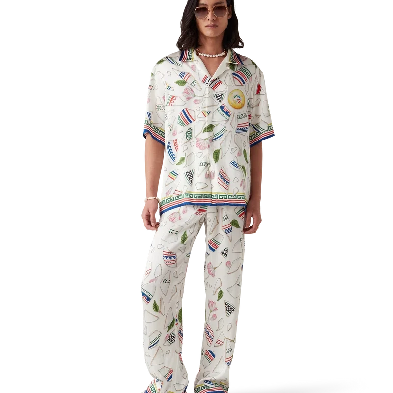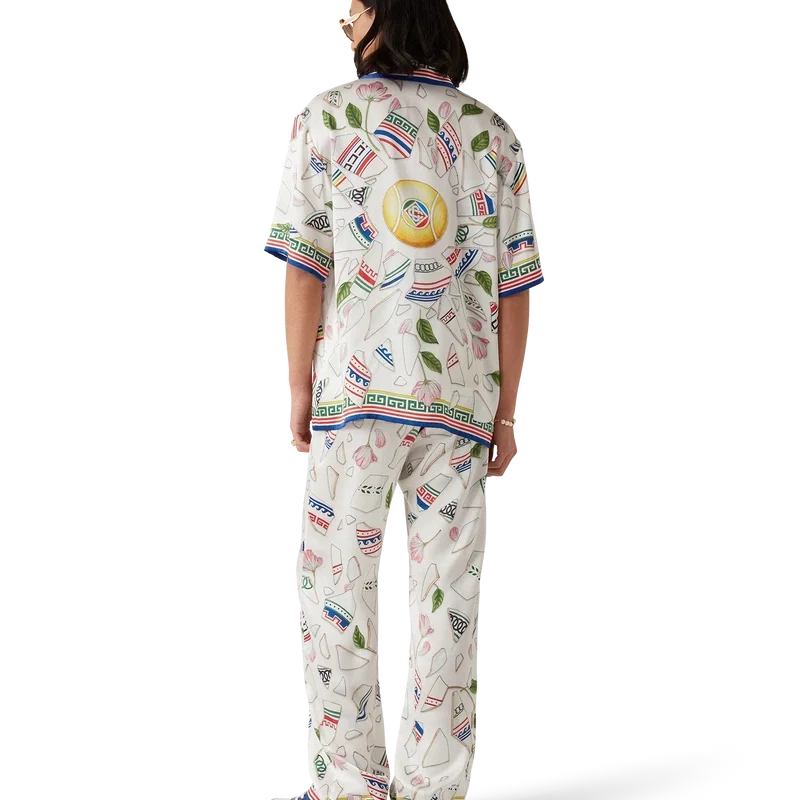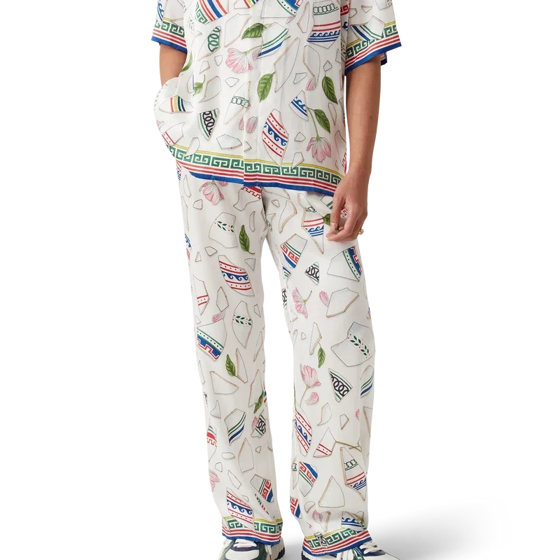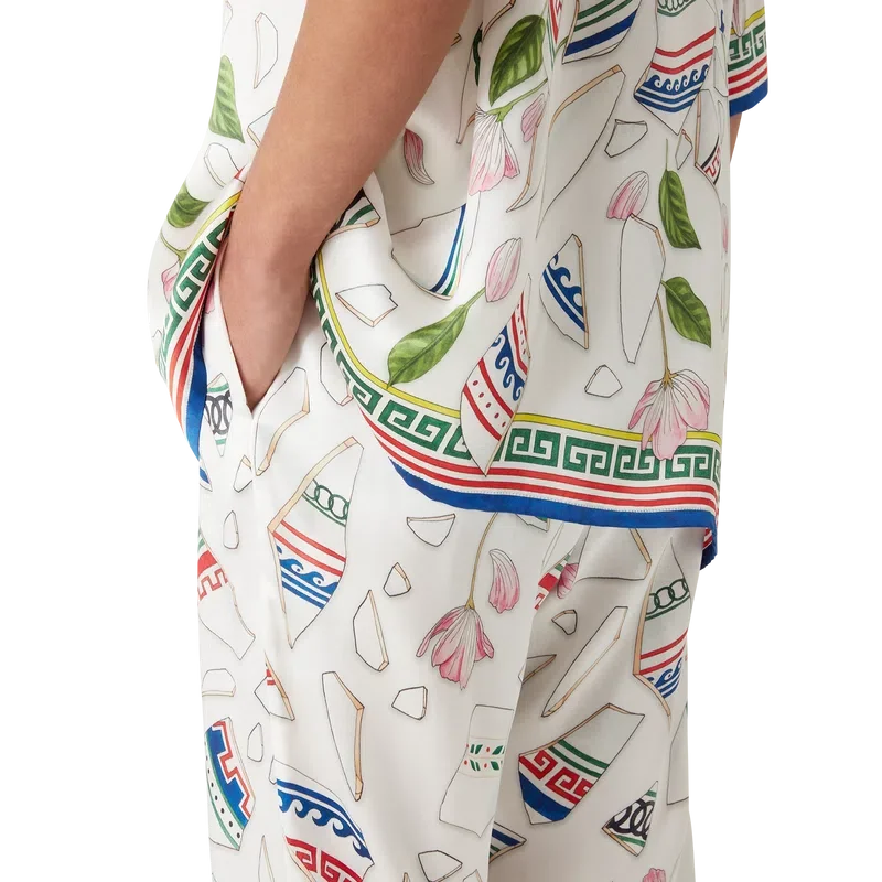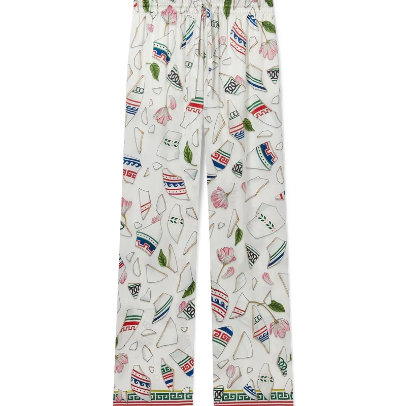 De Le Vase Brise zijden broek heeft een all-over print en is vervaardigd van zijdesatijn met de seizoensprint van het huis, geïnspireerd door de voortdurende studie van de klassieke schoonheid en hedendaagse allure van het oude Griekenland. Afgewerkt met een elastische tailleband, steekzakken in de zijkanten, een opgestikte zak aan de achterkant, een trekkoordsluiting en op Griekse sleutels geïnspireerde details aan de zoom.