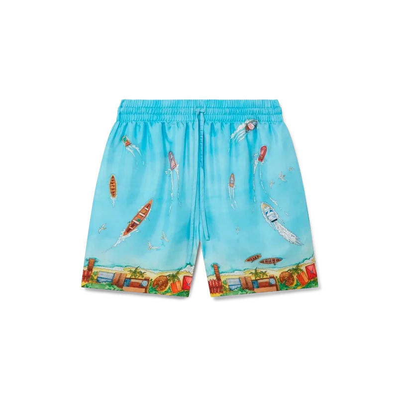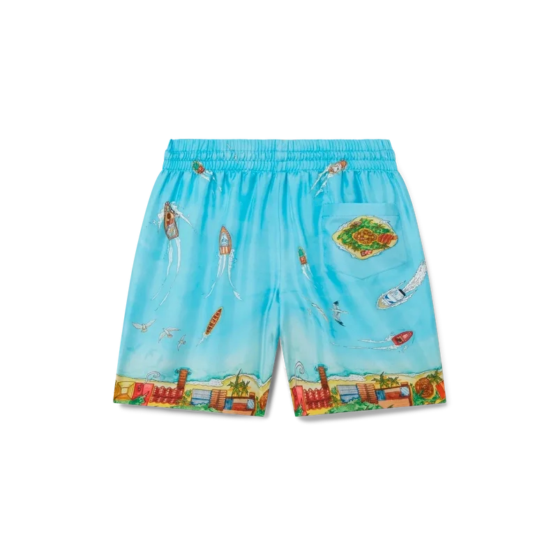 De Maison Sur Piloti zijden Short is een vertrouwd ontwerp, vervaardigd uit bedrukte zijden twill met een print geïnspireerd op huizen op palen zoals die in Nigeria te zien zijn. Afgewerkt met een elastische tailleband, trekkoordsluiting, zijzakken en een achterzak met het kenmerkende in elkaar grijpende CC-logo van het merk.