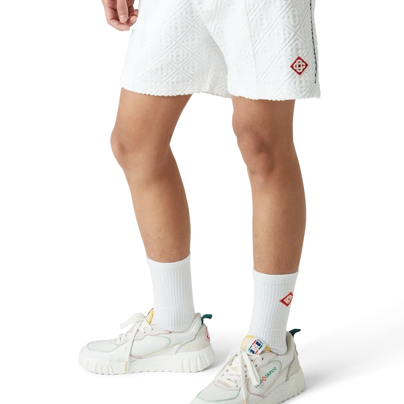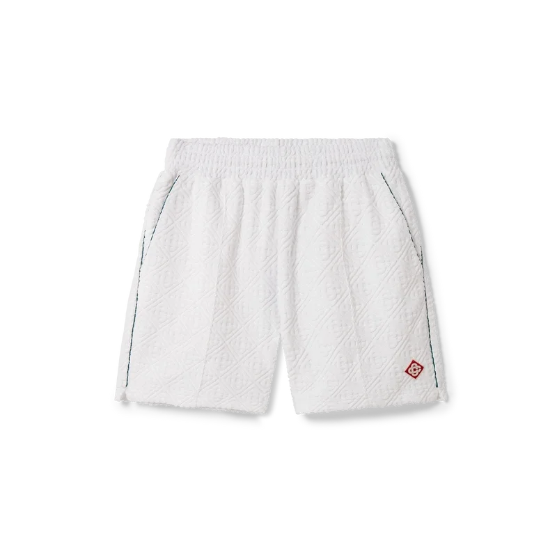 De Monogram-badstofshort is vervaardigd van een Monogram-badstof van een katoenmix en is voorzien van het kenmerkende ruitlogo van het huis. Afgewerkt met schuine voorzakken, een opgestikte achterzak, een trekkoordsluiting en plooien.