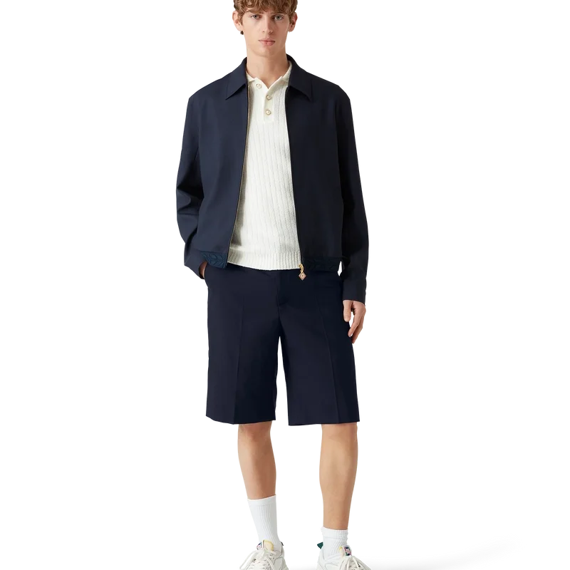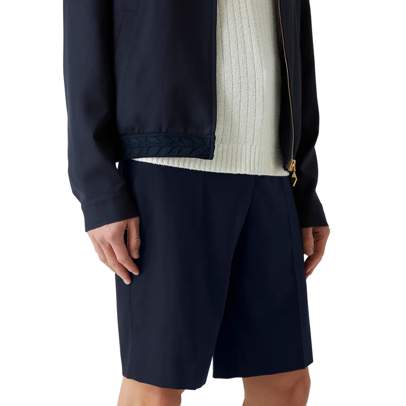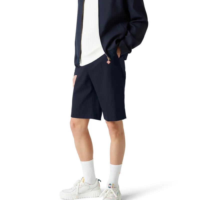 Deze wollen Short is vervaardigd uit stof van zuivere wol en voorzien van een voering van een katoenmix. Afgewerkt met riemlussen, een ritssluiting, schuine zijzakken, een paspelzak aan de achterkant en omgeslagen zomen.