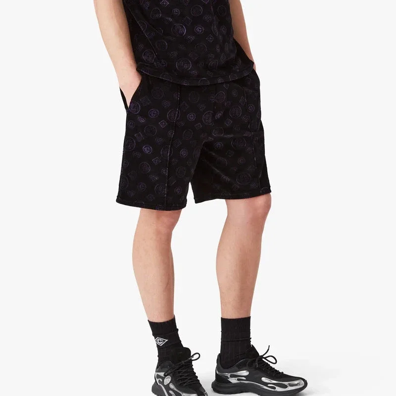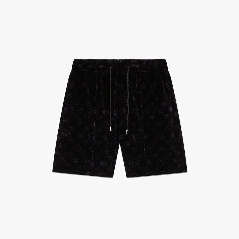 De paarse velours Shorts met monogram heeft een verfijnd ontwerp, met overal het iconische monogrampatroon van het huis.