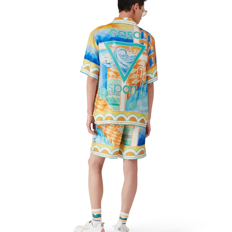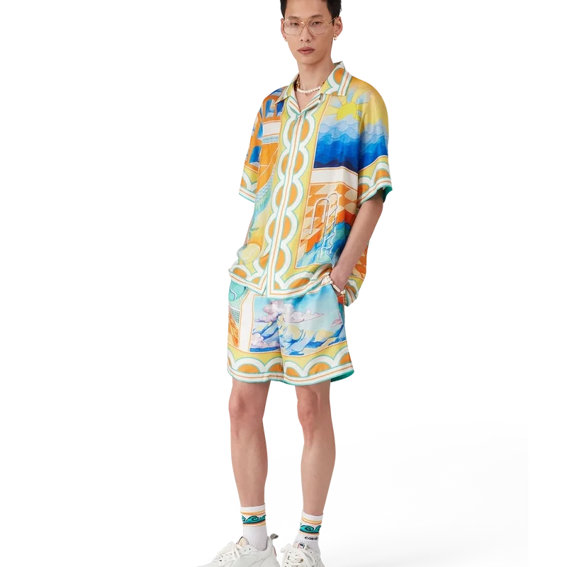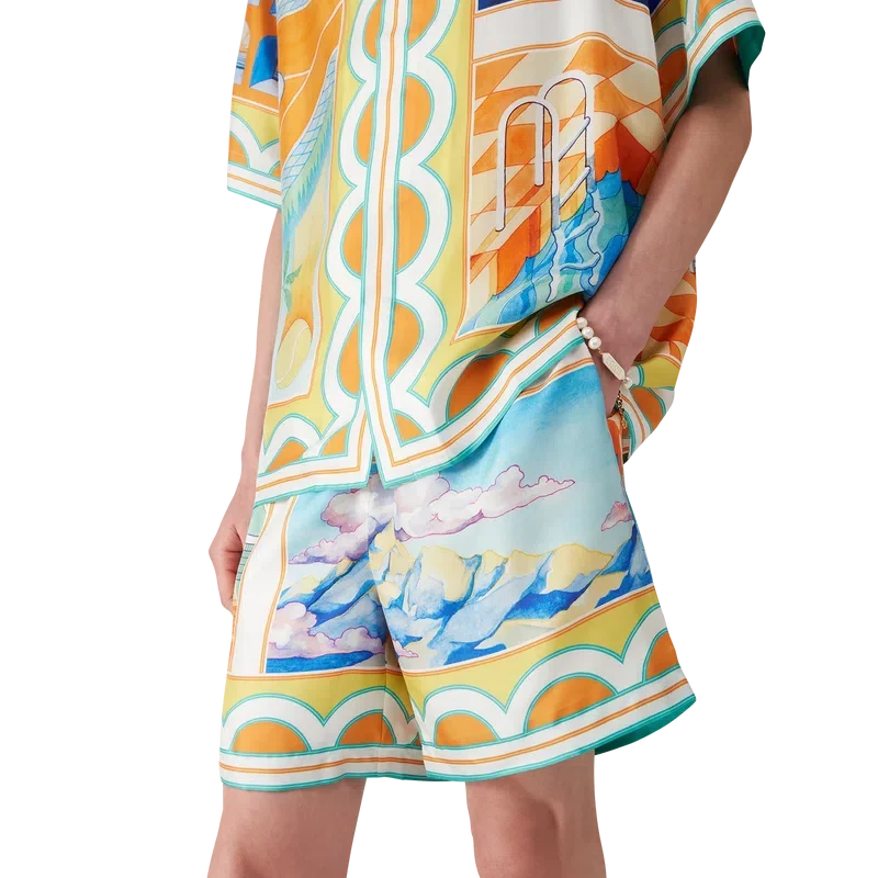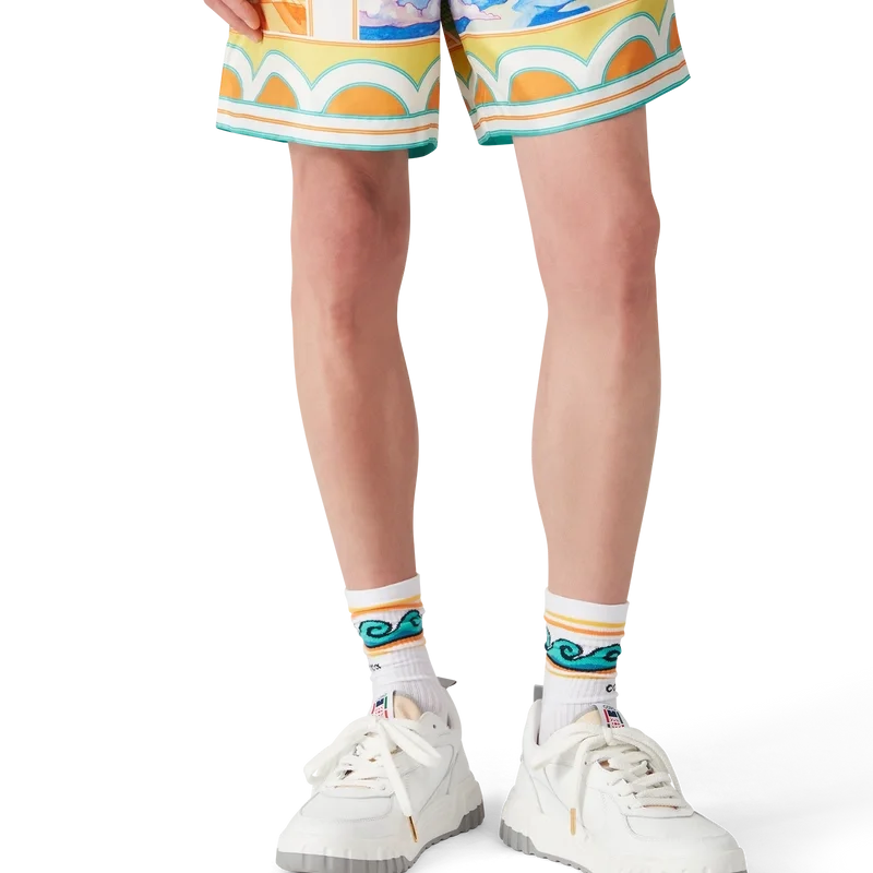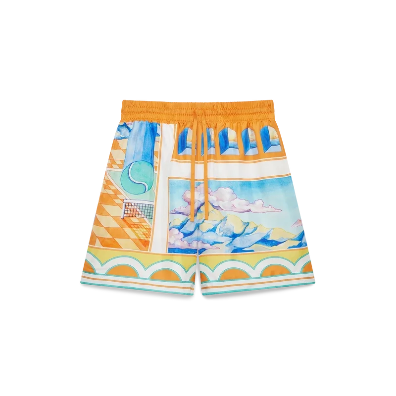 De Surreal Pool zijden short heeft een all-over print en is gemaakt van zijden twill. Afgewerkt met een elastische tailleband, trekkoordsluiting, zijzakken in de naad, randdetail aan de zoom en een opgestikte achterzak.
