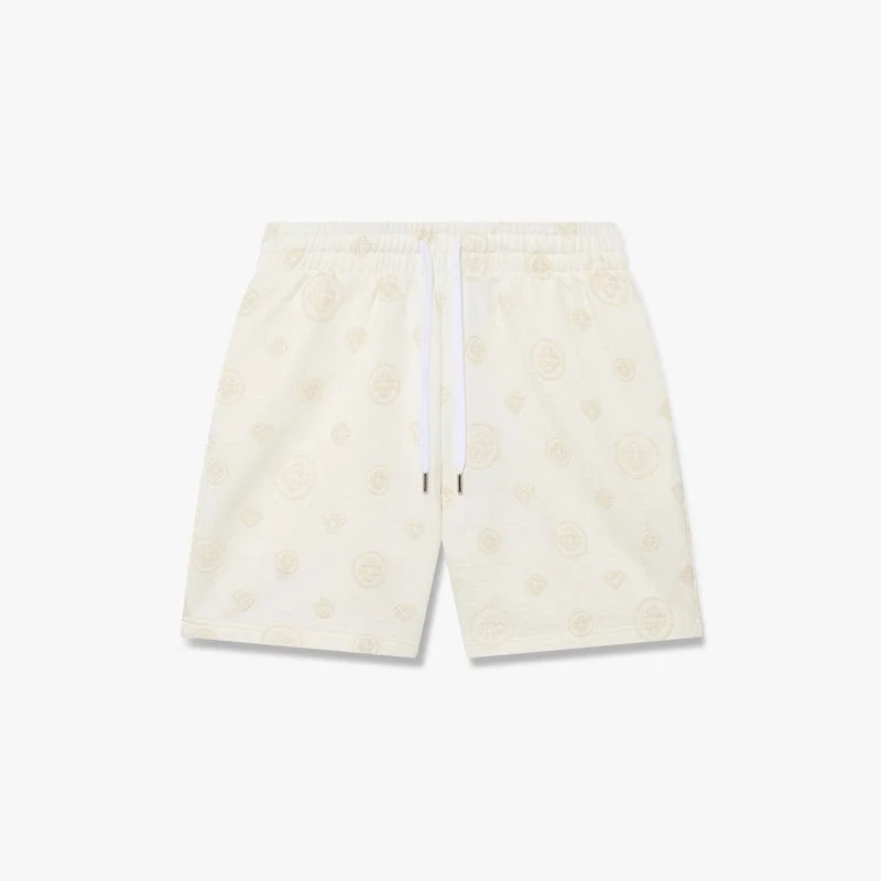 De Sweatshorts met geborduurd off-white monogram hebben een relaxte pasvorm en zijn voorzien van de iconische Monogram Casablanca-logo-print van het huis. Afgewerkt met een elastische tailleband, trekkoordsluiting, zijzakken in de naad, een voering en een opgestikte achterzak.