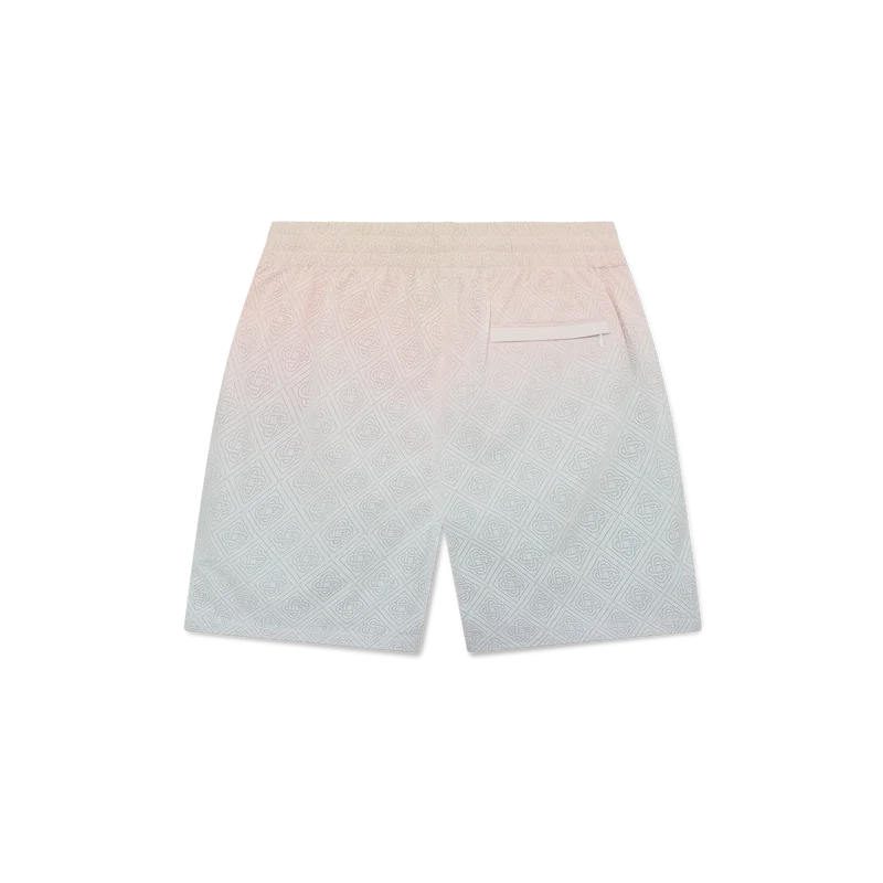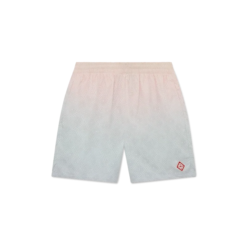 De trainingsshort met lasergegraveerde details in kleurverloop is een sportief ontwerp, vervaardigd uit een met laser geperforeerde taffeta-stof met een voering in kleurverloop. Afgewerkt met het diamantlogo van het huis, een elastische tailleband met een intern trekkoord met gouden uiteinden, zijzakken en een achterzak met ritssluitingen.