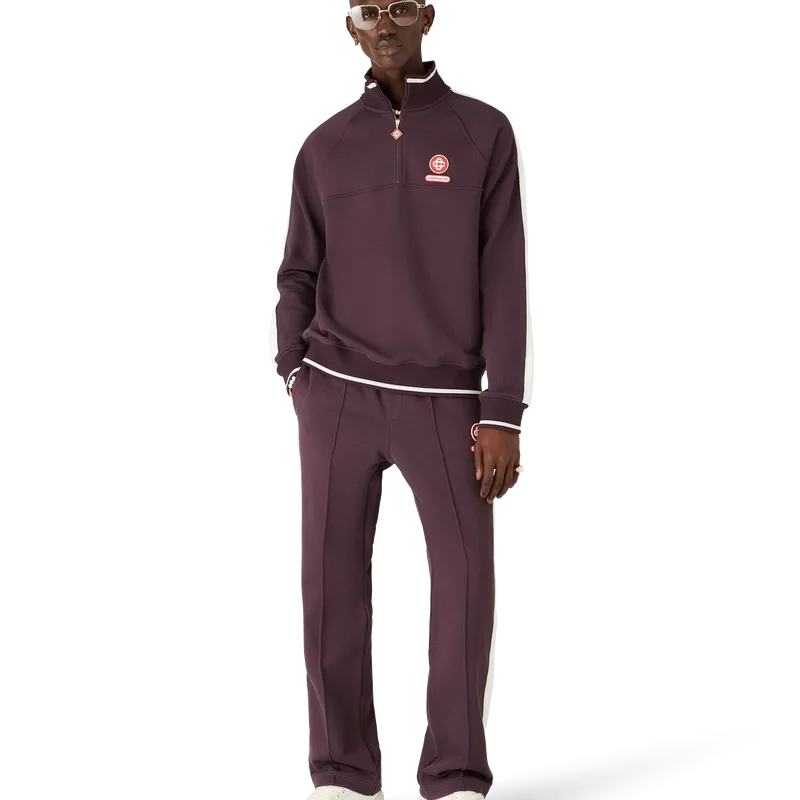 De Tricot-trainingsbroek heeft een recht model en is voorzien van het Casablanca-logopatch van het huis. Afgewerkt met een elastische tailleband, een trekkoord aan de binnenkant, plooien aan de voorkant, biezen langs de pijpen, steekzakken met verborgen ritssluiting en een achterzak met ritssluiting.
