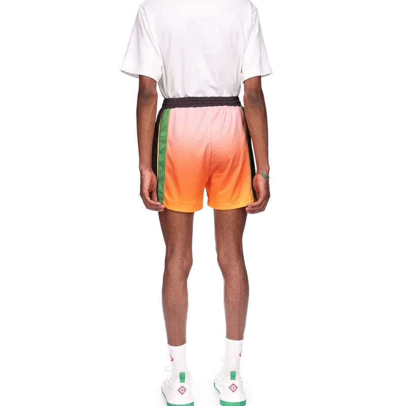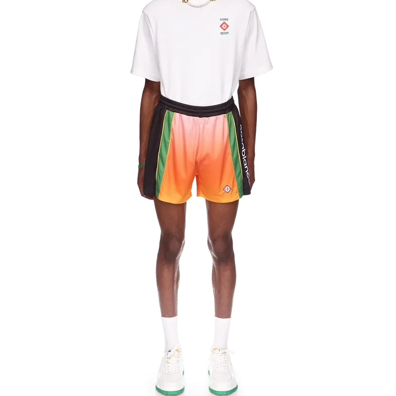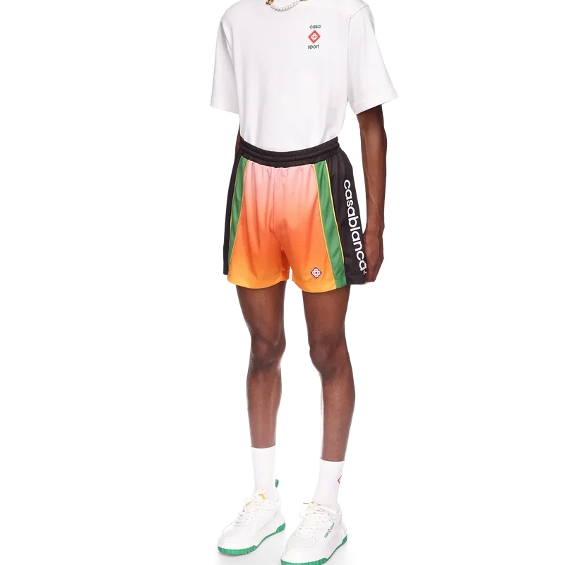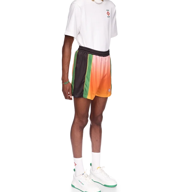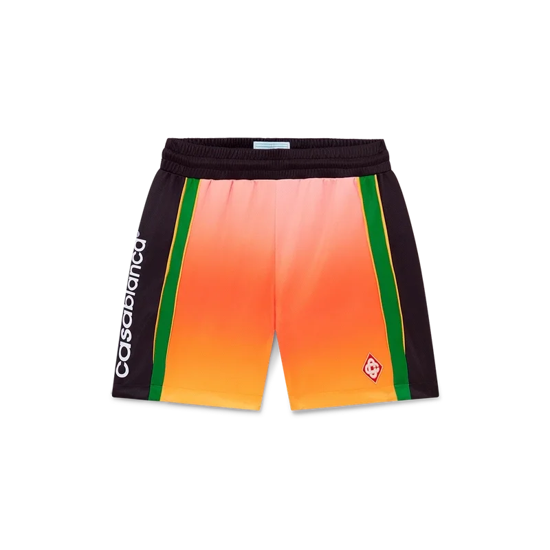 De Gradient voetbalshort is een sportkledingontwerp vervaardigd uit een bedrukte Birdseye-meshstof en heeft een reeks kleuren in kleurverloop die symbool staan voor de rijke uitwisselingen tussen culturele disciplines in Afrikaanse kunst, muziek en film. Afgewerkt met een elastische tailleband, trekkoordsluiting, Casablanca-logo op één been, het kenmerkende diamantlogo van het huis, zijzakken en een achterzak.
