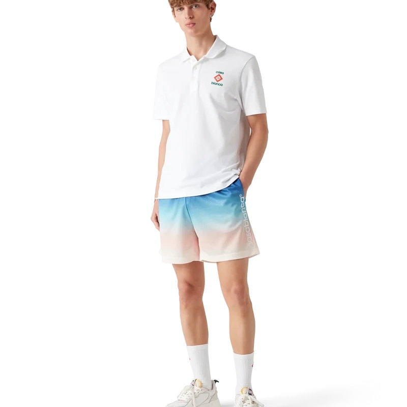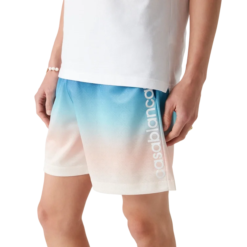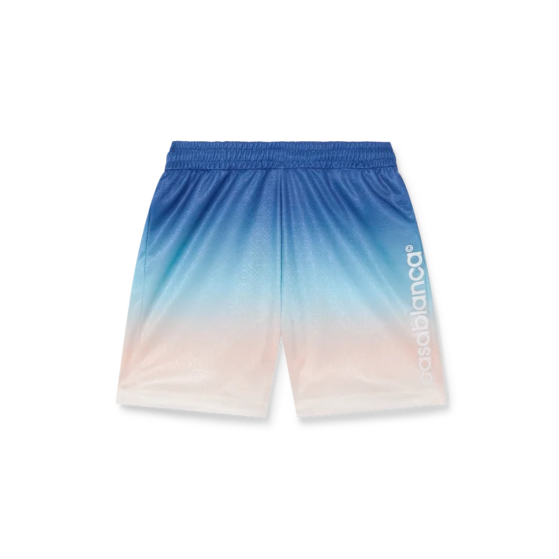 De Gradient voetbalshort is een sportkledingontwerp met een reeks kleurverlopen die de kernwaarden van ons merk benadrukken. Gemaakt van een jacquard monogram polyester stof met het kenmerkende Casablanca-logo van het huis aan de zijkant. Afgewerkt met een elastische tailleband met trekkoordsluiting en zijzakken in de naad.