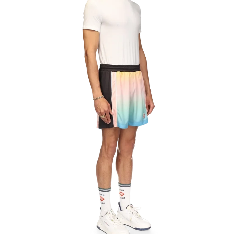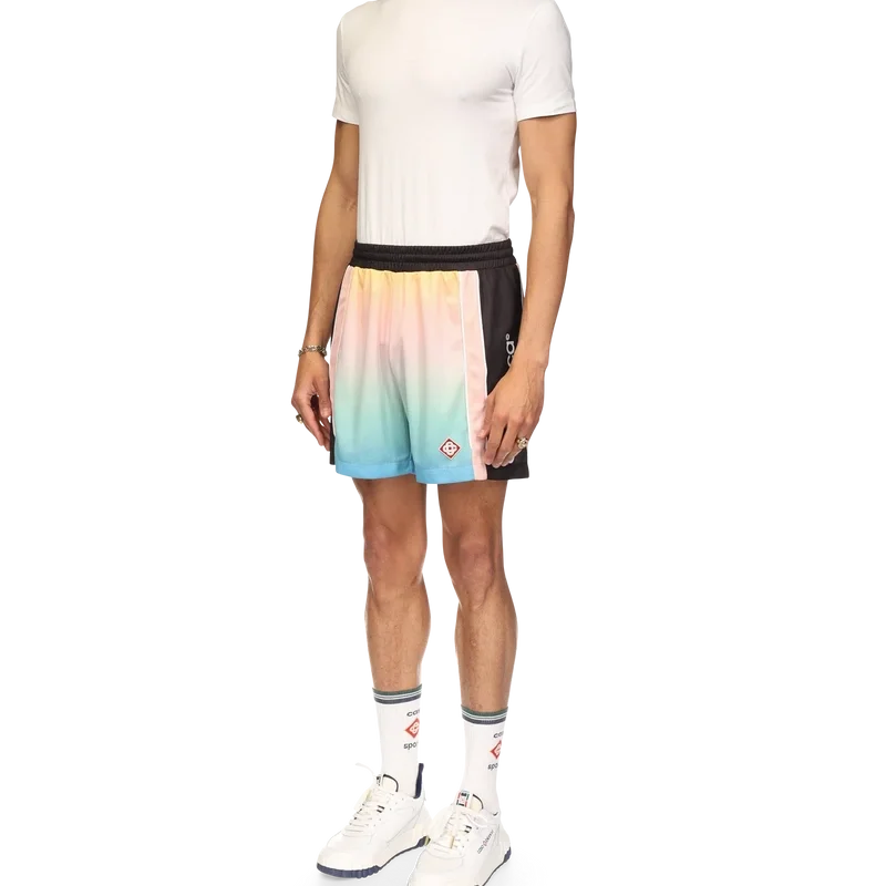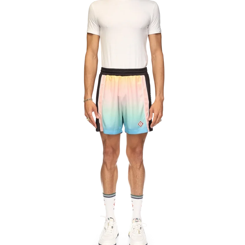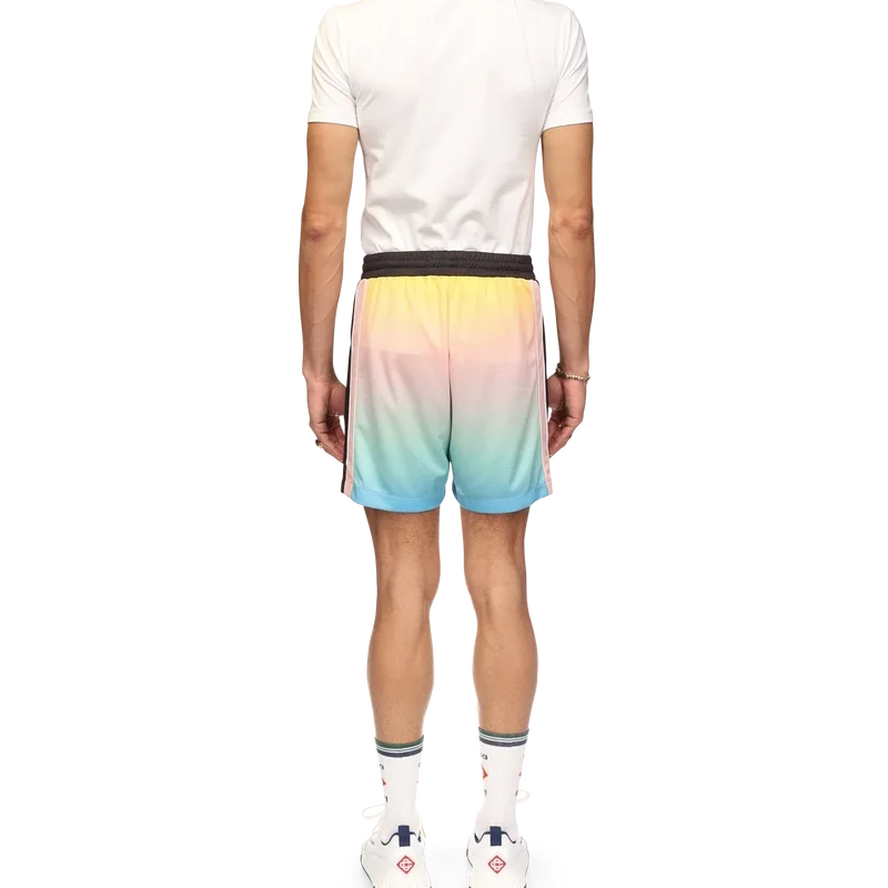 De voetbalshort met pastelkleurig kleurverloop is een sportkledingontwerp met een reeks pastelkleuren die de etherische thema’s benadrukken die centraal staan in ons merk. Gemaakt van Birdseye-mesh met de kenmerkende diamantlogo-patch van het huis en een Casablanca-logostripdetail aan de zijkant. Afgewerkt met een elastische tailleband met trekkoordsluiting en zijzakken in de naad.